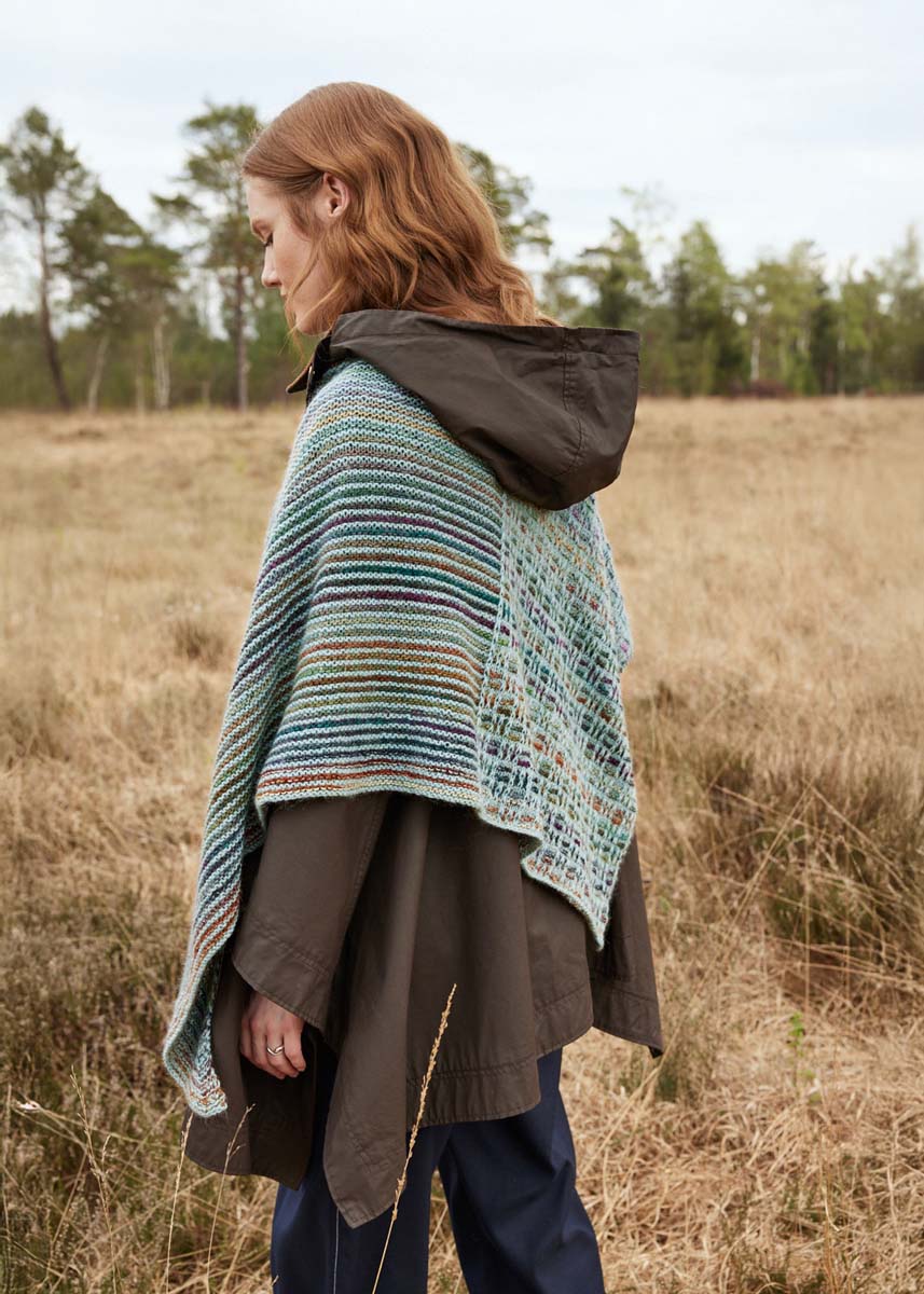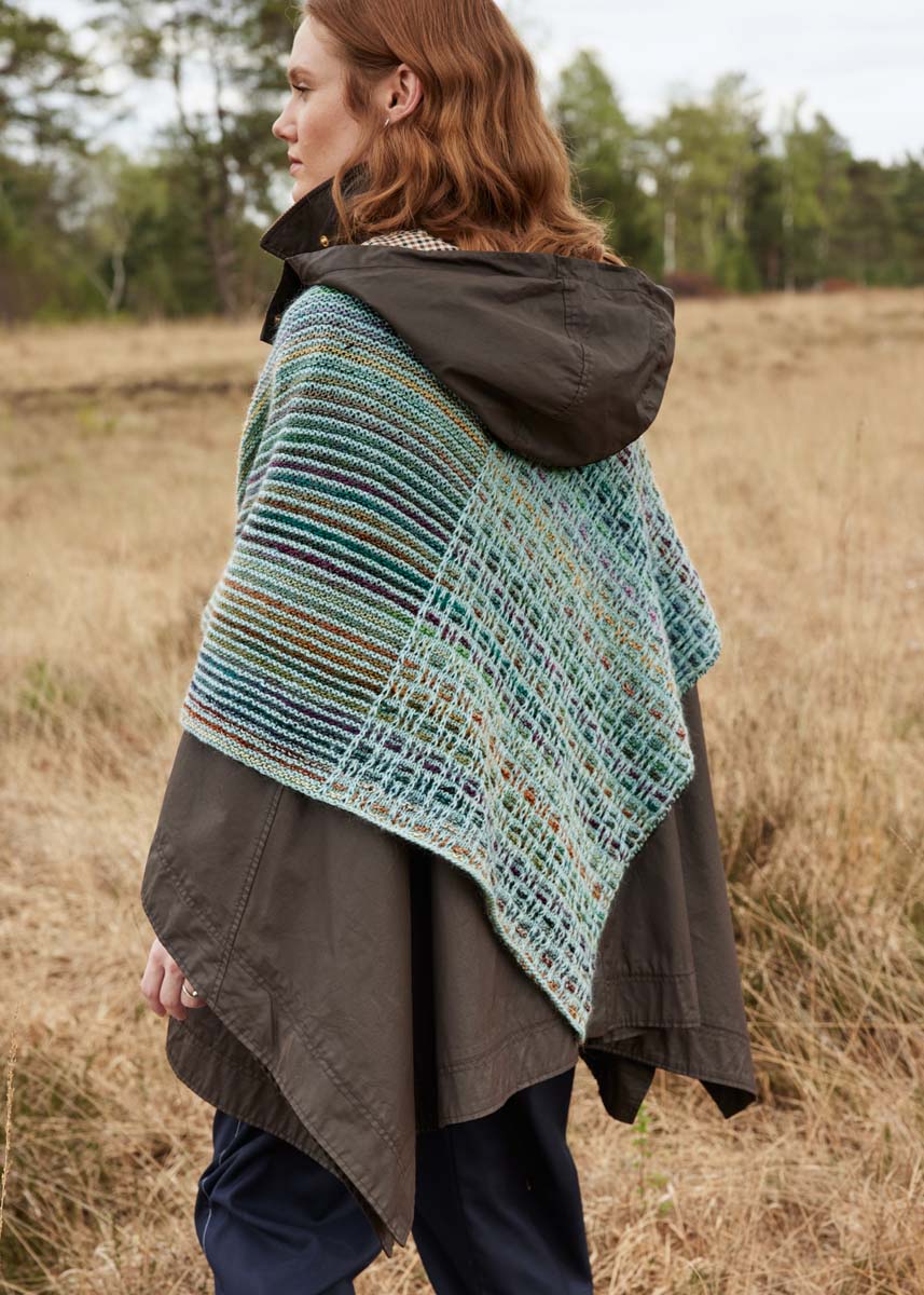 Lana Grossa Colorissimo (100% Schurwolle (Merino fine), Lauflänge 300 m/100 g), 200 g Hellgrün/Grün/Petrol/ Dunkelpetrol/Rot-/Schokobraun/Burgund/Grau (Fb. 216), Lana Grossa Ecopuno (72% Baumwolle, 17% Schurwolle (Merino), 11% Alpaka (Baby), Lauflänge 215 m/50 g), 150 g in Minttürkis (Fb. 44), Lana Grossa Silkhair (70% Mohair (Superkid), 30% Seide, Lauflänge 210 m/25 g), 75 g Pastellgrün (Fb. 186); Rundstricknadel Nr. 4 - 4,5 100 cm lang, 1 Maschenmarkierer.