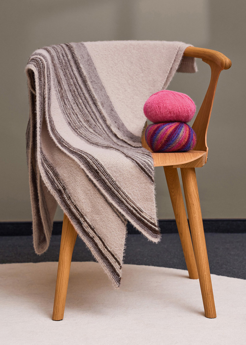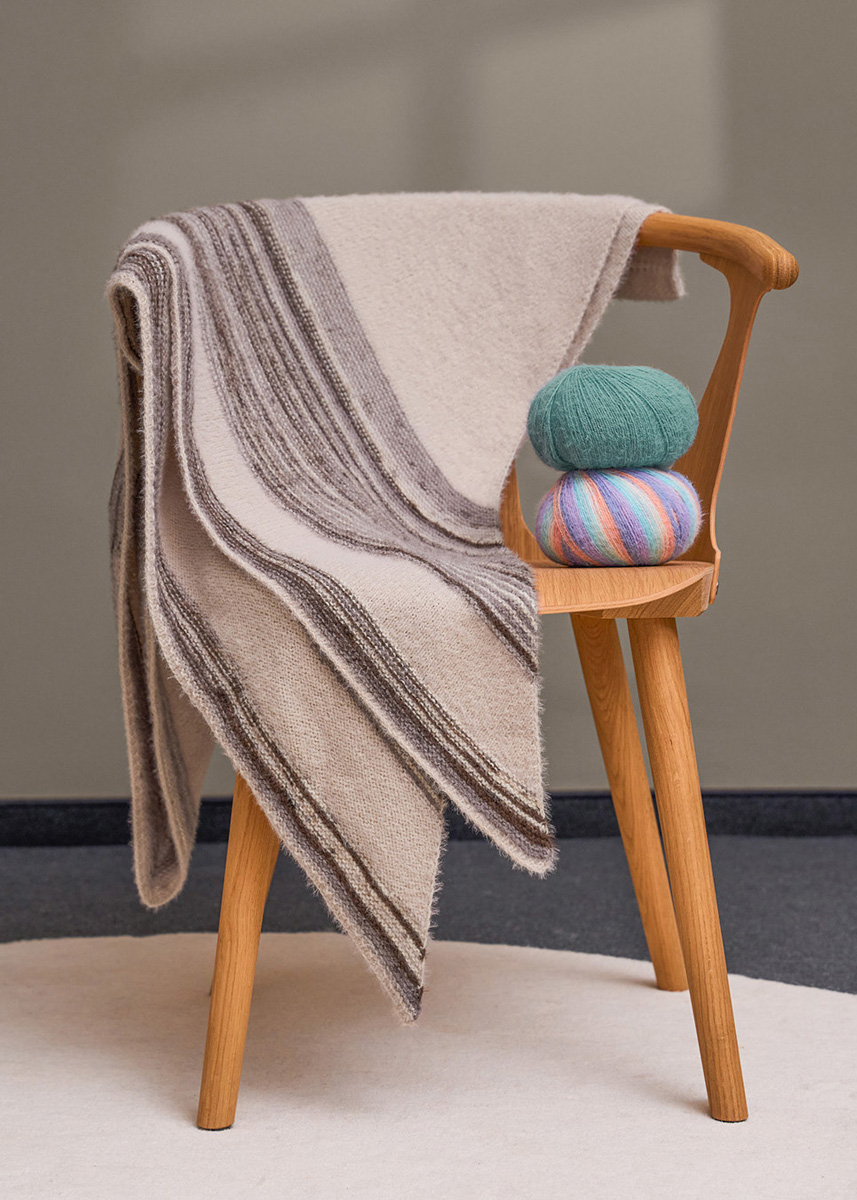 Lana Grossa-Qualität Cosy Socks (70% Schurwolle (Merino), 30% Polyamid, LL = ca. 400 m/100 g): 200 g Beige (Fb 9) und Cosy Socks Soft Stripes (70% Schurwolle (Merino), 30% Polyamid, LL = ca. 400 m/100 g): 200 g Mokka/Graubraun/Beige/Creme (Fb 103); 1 lange Rundstricknadel Nr 3,5.
