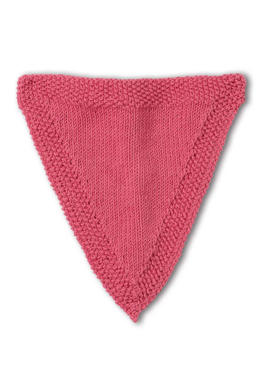 Lana Grossa Elastico (96 % Baumwolle, 4 % Polyester (Elité); LL = 160 m/50 g): 50 g Azalee (Fb. 155); Nadeln 3,5 mm; 2 Holzknöpfe mit 15 mm Ø.