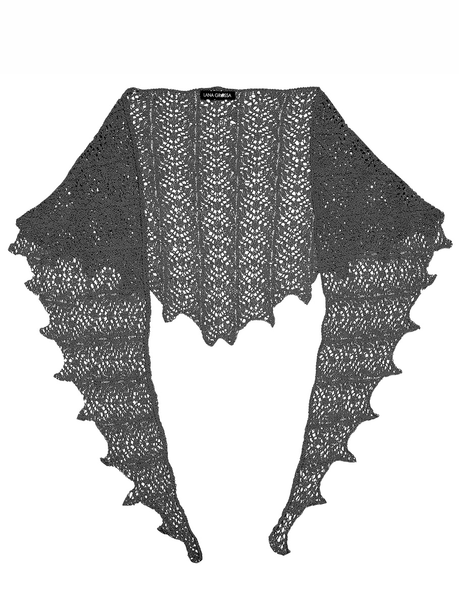 Lana Grossa-Qualität „Capri“ (55% Schurwolle, 30% Polyamid, 15% Seide, LL 150 m/50 g); 200 g Dunkelrot (Fb 6); eine Rundstricknadel Nr. 5, eine Häkelnadel Nr. 4
