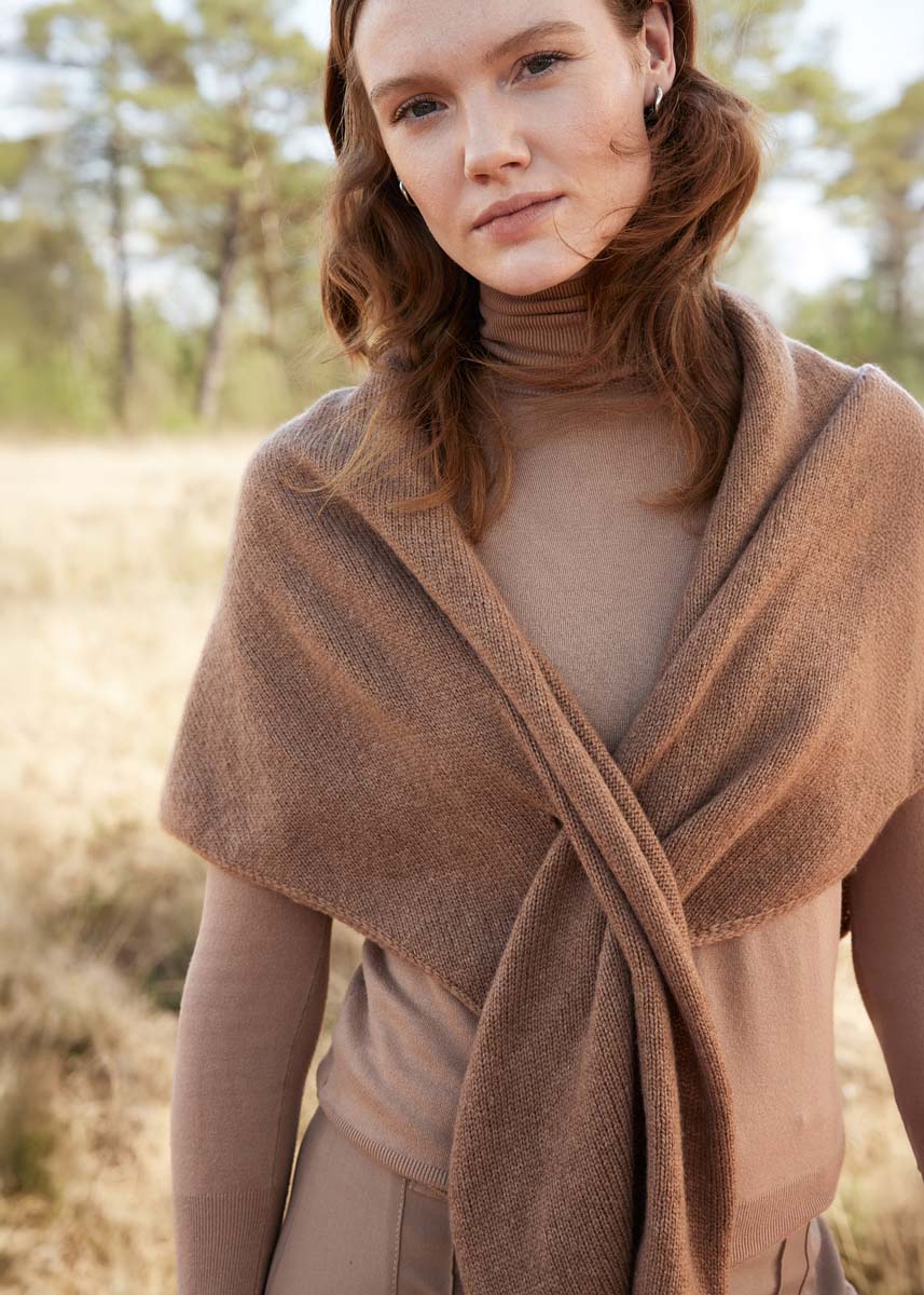 Lana Grossa Cashmere 16 Fine (80 % Schurwolle (Merino extrafine), 10 % Kaschmir, 10 % Polyamid, Lauflänge 320m /50g), 200 g in Camel (Fb 45), Rundstricknadel Nr. 4,5.