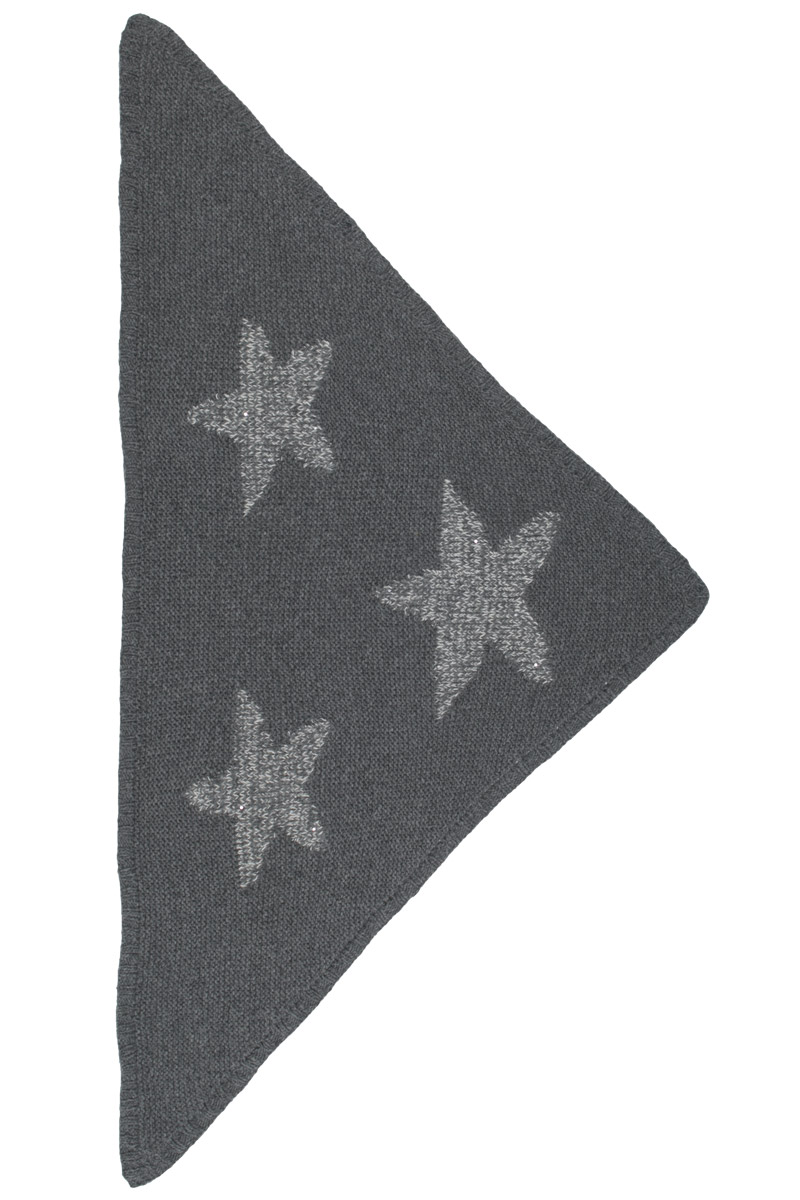 Lana Grossa Qualität „Merino Air“ (100 % Schurwolle, Lauflänge 130 m/50 g): ca. 250 g Dunkelgrau meliert (Fb 2) und „Lace Paillettes“ (45 % Alpaka, 20 % Schurwolle, 15 % Baumwolle, 15 % Polyamid, 5 % Polyester, Lauflänge 150 m/25 g): ca. 25 g Rohweiß (Fb 1), Stricknadeln Nr. 5, eine 120 cm lange Rundstricknadel.