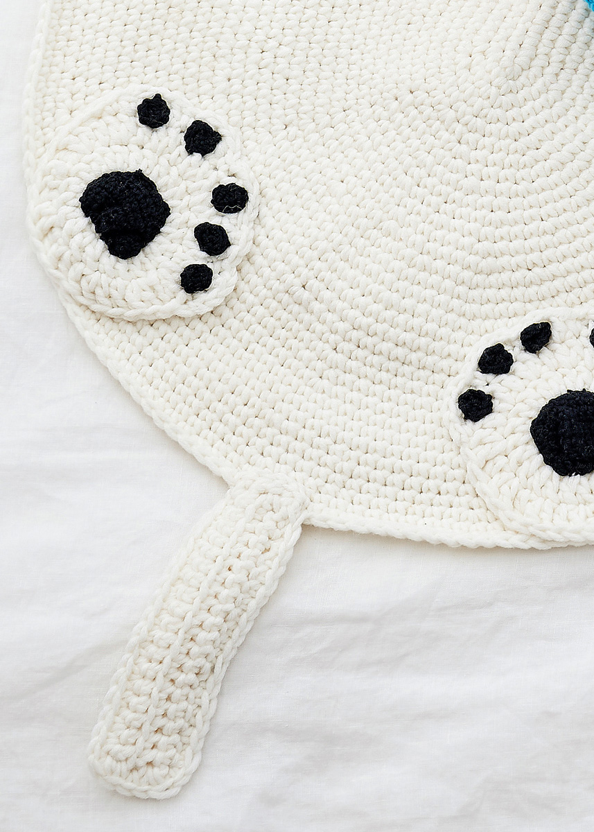 Lana Grossa Mille II (50 % Schurwolle (Merino), 50 % Polyacryl, Lauflänge 55 m/50 g) 850 g Rohweiß (Fb 17) und 50 g Schwarz (Fb 15) und Meilenweit 100 g Merino (75 % Schurwolle (Merino extrafine), 25 % Polyamid, Lauflänge 420 m/100 g) 100 g Schwarz (Fb 2402); Häkelnadel Nr. 4 und 6.