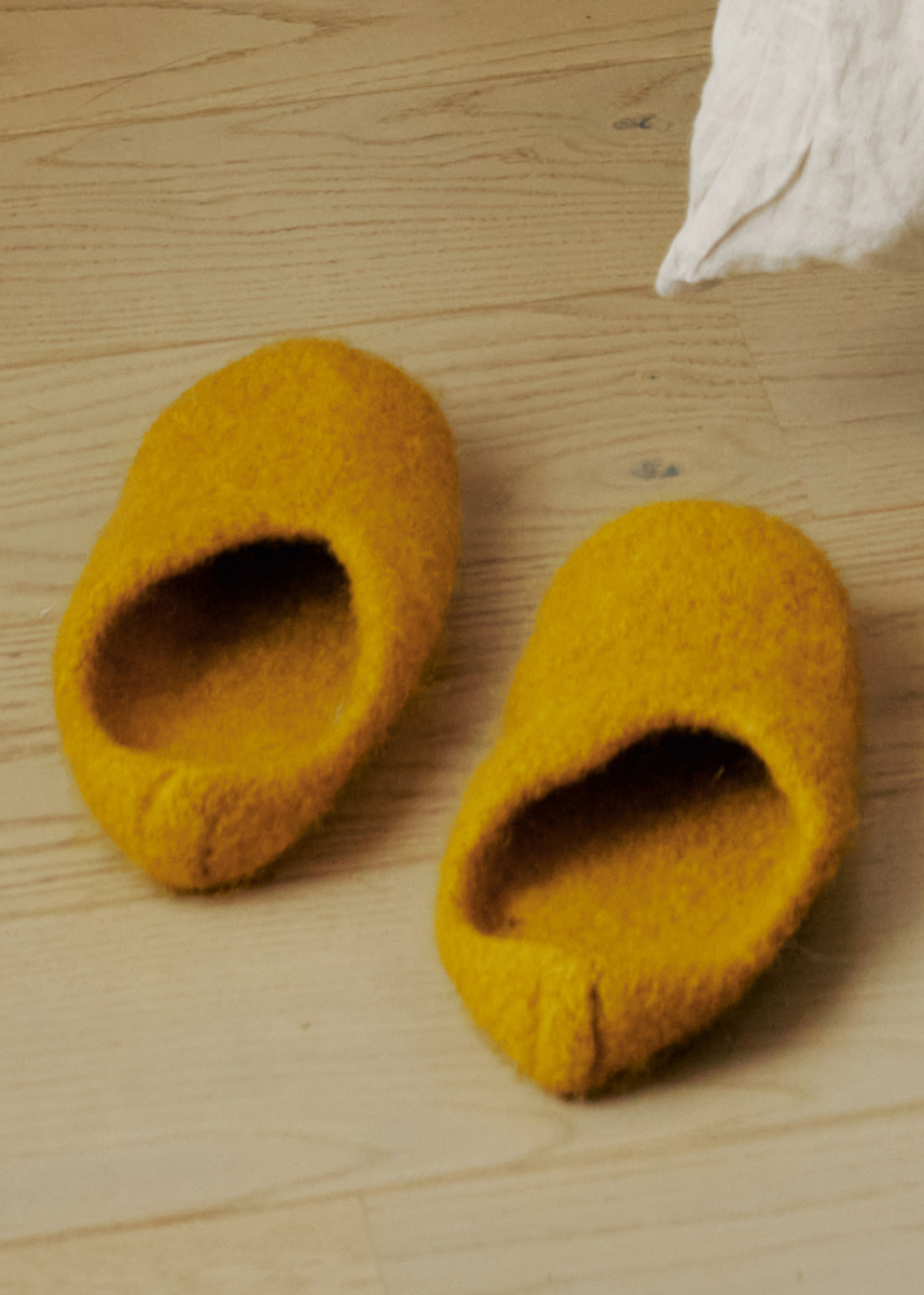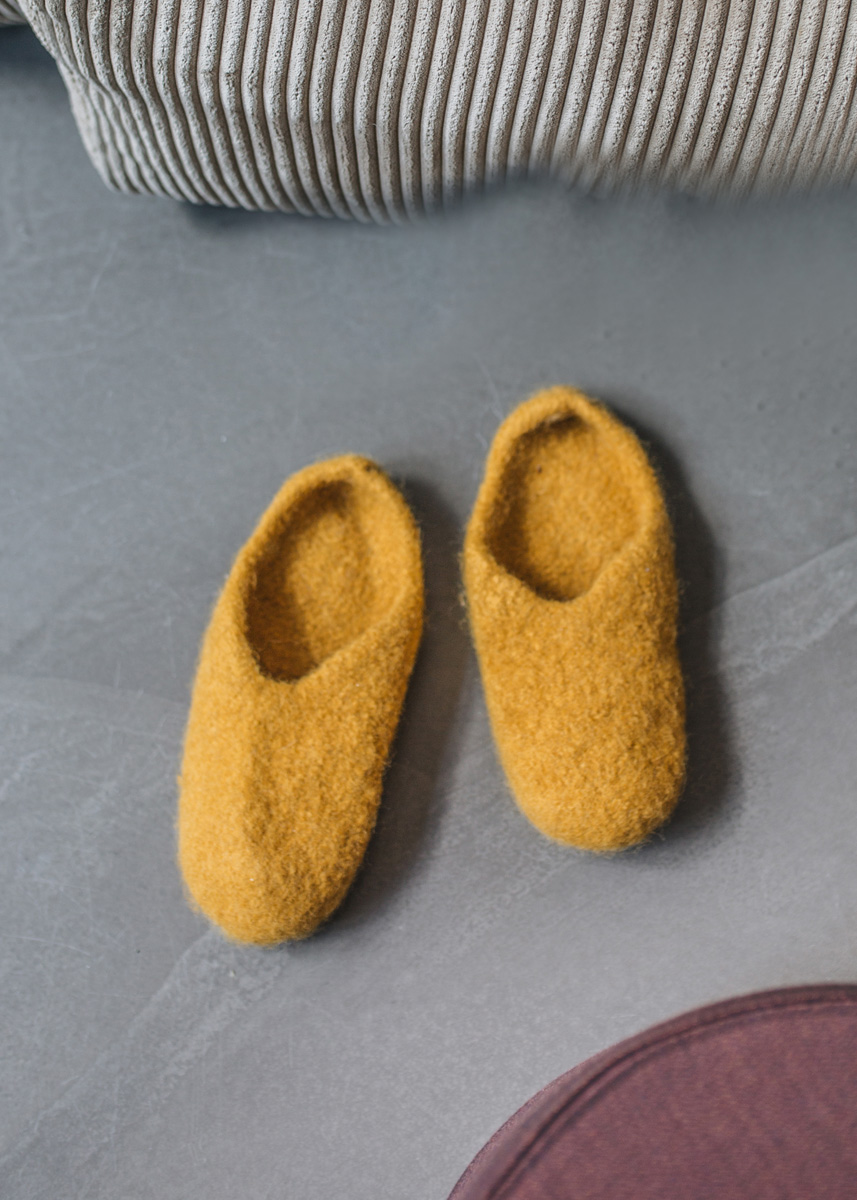 Filzpantoffeln sehen süß aus und sind einfach gemacht. Diese werden glatt rechts gestrickt. Man beginnt mit einem Rechteck, die Spitze wird später in Runden gestrickt. Zum Schluss die Ferse mit einer kurzen Naht schließen und das Ganze filzen.