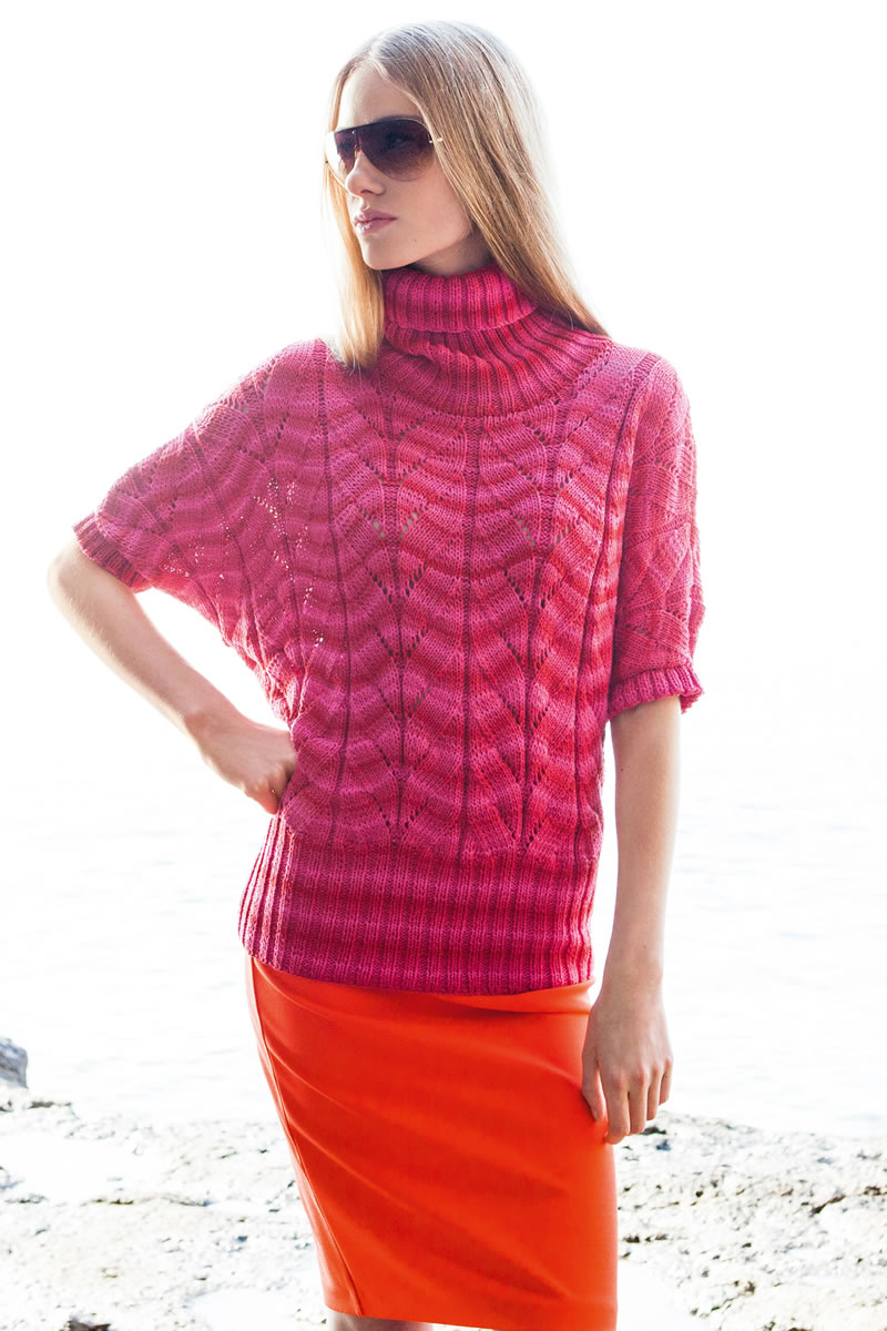 Seine elegante Ausstrahlung macht diesen lässigen Rolli zu unserem absoluten Liebling. Durch die Fledermaus-Ärmel locker geschnitten, mit Ajours in starken Rotnuancen gestrickt, ist er das perfekte Day-to-Night-Investment-Piece!