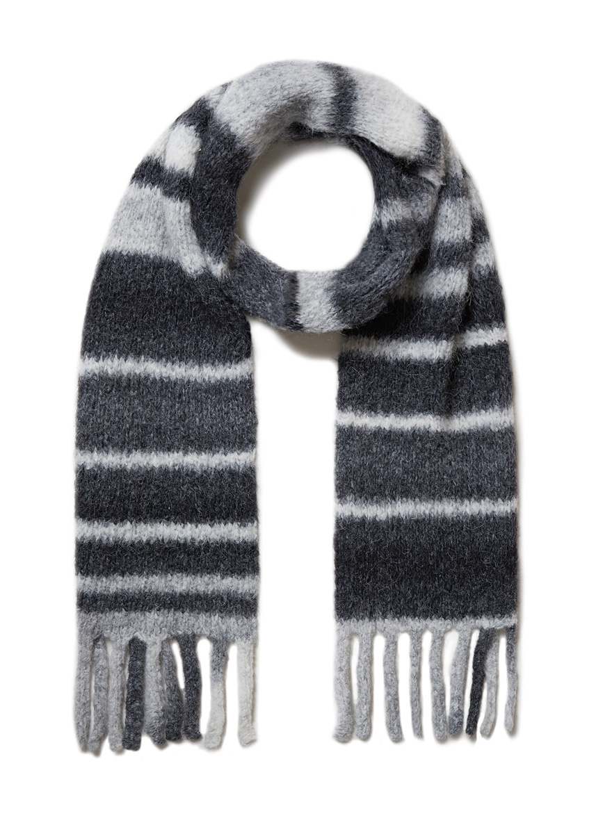 Lana Grossa-Qualität „Gigante“ (70 % Alpaka (fine), 30 % Polyamid, LL = ca 300 m/100 g): ca 200 g Silber-/ Hell-/Dunkelgrau/Anthrazit (Fb 12); Stricknadeln Nr 7; zwei Socken-Stricknadeln Nr 7.
