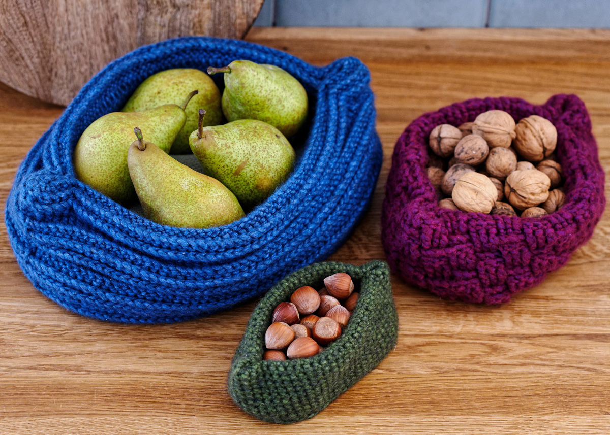 Lana Grossa-Qualität „Landlust Winterwolle“ (50% Schurwolle Merino, 35% Baumwolle, 15% Yak, LL ca. 70 m/50 g), 350 g Kobaltblau Meliert (Fb 15); 1 Häkelnadel Nr. 5, farblich passendes Nähgarn.