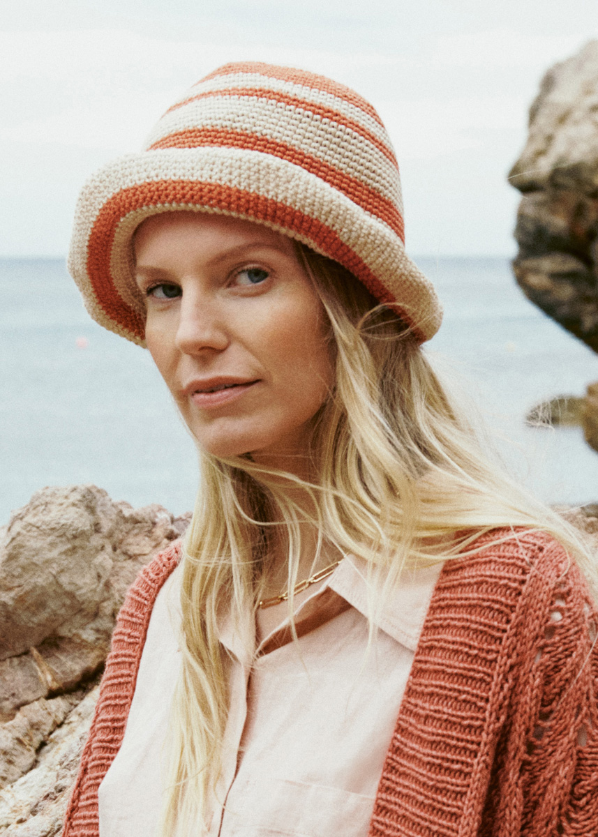 Dieser Hut wird in Runden von oben nach unten gehäkelt. Die Form entsteht durch Zunahmen – das schaffen auch Einsteiger problemlos.