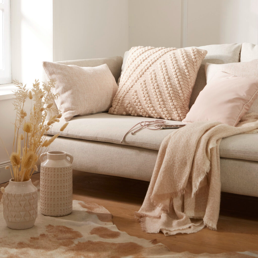 400g "Lala Berlin Lovely Cotton" (75% Schurwolle, 25% Baumwolle, Lauflänge: ca. 90 m / 50 g) Fb. (7), Wollhäkelnadel Nr. 8, Kissenfüllung, 50 x 50 cm.