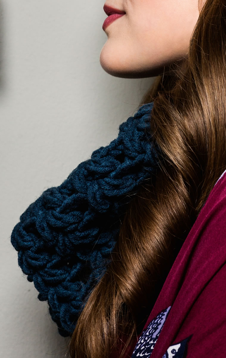 Lana Grossa-Qualität „Mille II” (50 % Schurwolle (Merino extrafine), 50 % Polyacryl, waschmaschinenfest, LL = ca. 55 m/50 g): ca. 200 g dunkles Petrolblau (Fb. 23); Hinweis: Wenn du dir Mütze und Loop, also beide Teile, häkeln willst, reichen dir insgesamt 250 g Mille II.