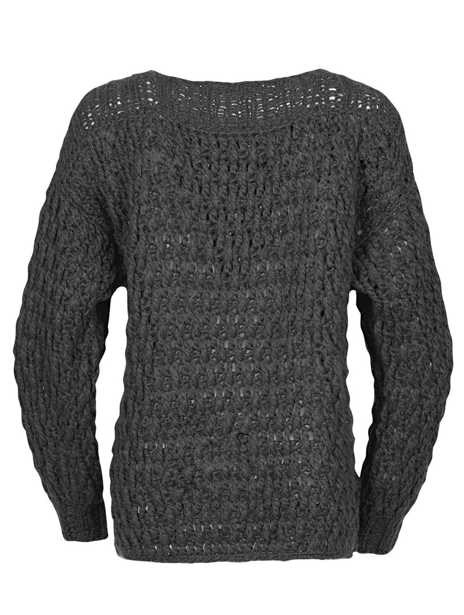DER U-BOOT-AUSSCHNITT mit breiter Rippenblende ist ganz praktisch, wenn man nicht gern Ausschnittbündchen einstrickt. Diese Blende wird nachträglich angestrickt und wenn das Vorder- und Rückenteil fertig ist, dann ist es auch wirklich fertig.