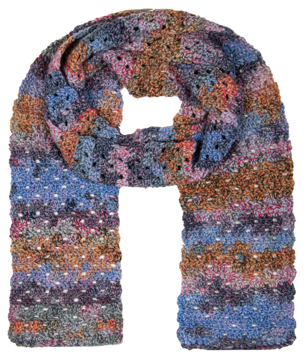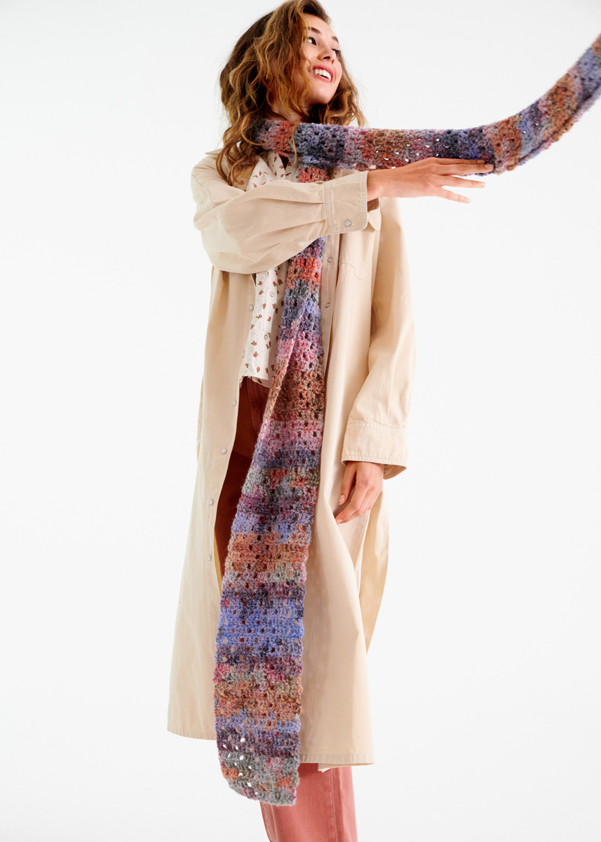 Stäbchen, Luftmaschen und zarte Farben: Garnneuheit Lala Berlin Stripy wurde für unseren Häkelschal hübsch luftig und feminin inzeniert.