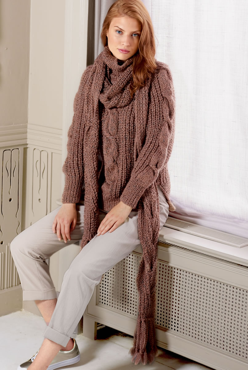 BESTENS GERÜSTET für Ihre Entdeckungstour durch die City, denn mit diesem Rollkragenpullover kommt der passende Schal gleich mit! Klassische Zopfmuster und Metallic-Akzente aus dem Trendgarn überzeugen auch visuell.