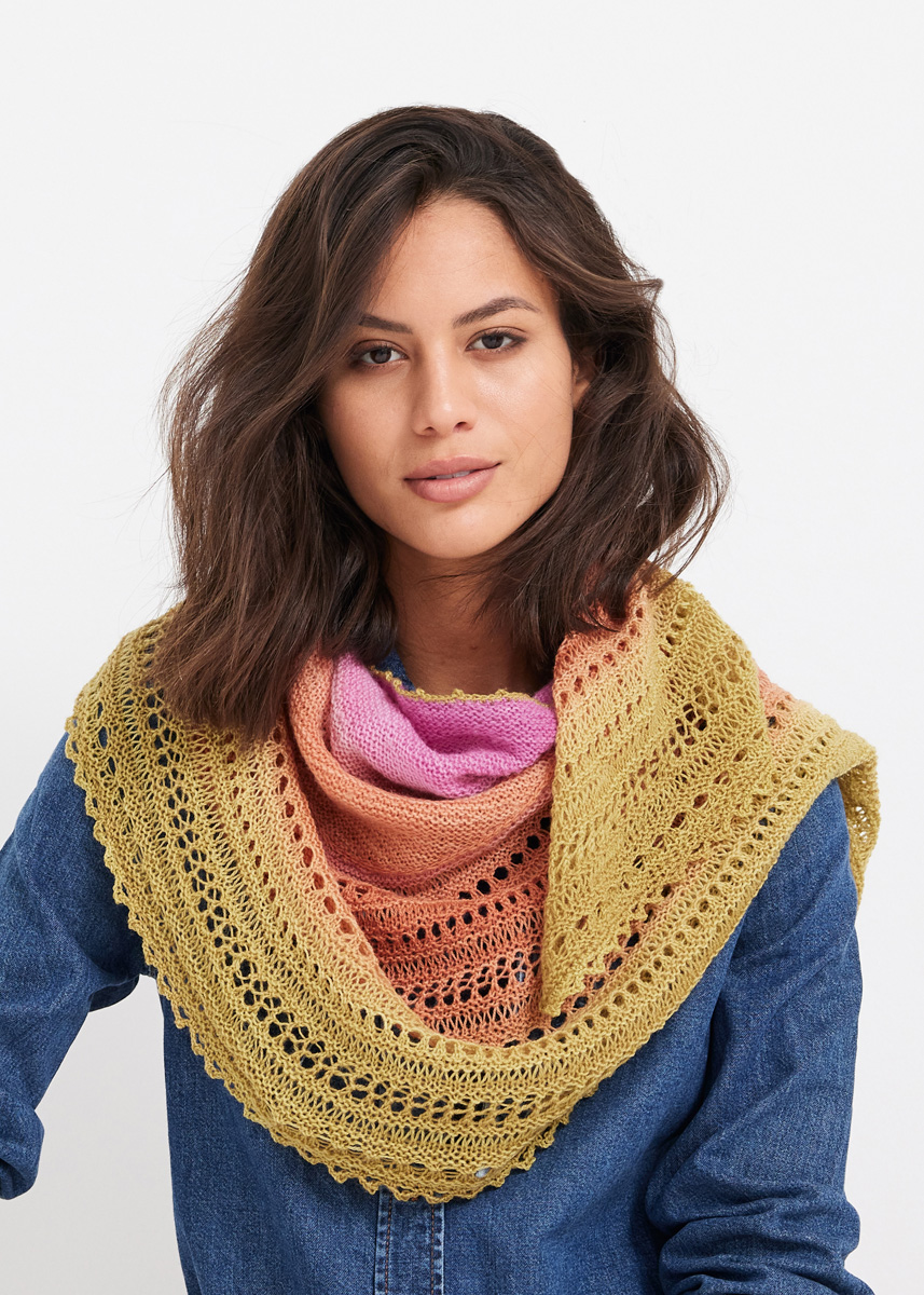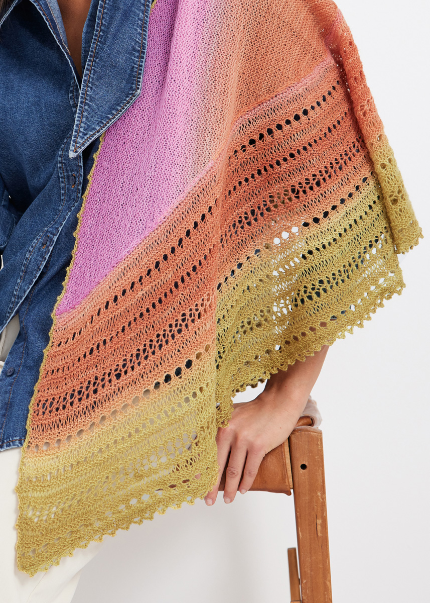 Lana Grossa Cool Wool Lace hand-dyed (100% Schurwolle (Merino), Lauflänge 800 m/100 g), 100 g Disha (Fb 801); 1 Rundstricknadel Nr. 3,5, 100 cm lang und 1 Häkelnadel Nr. 3.