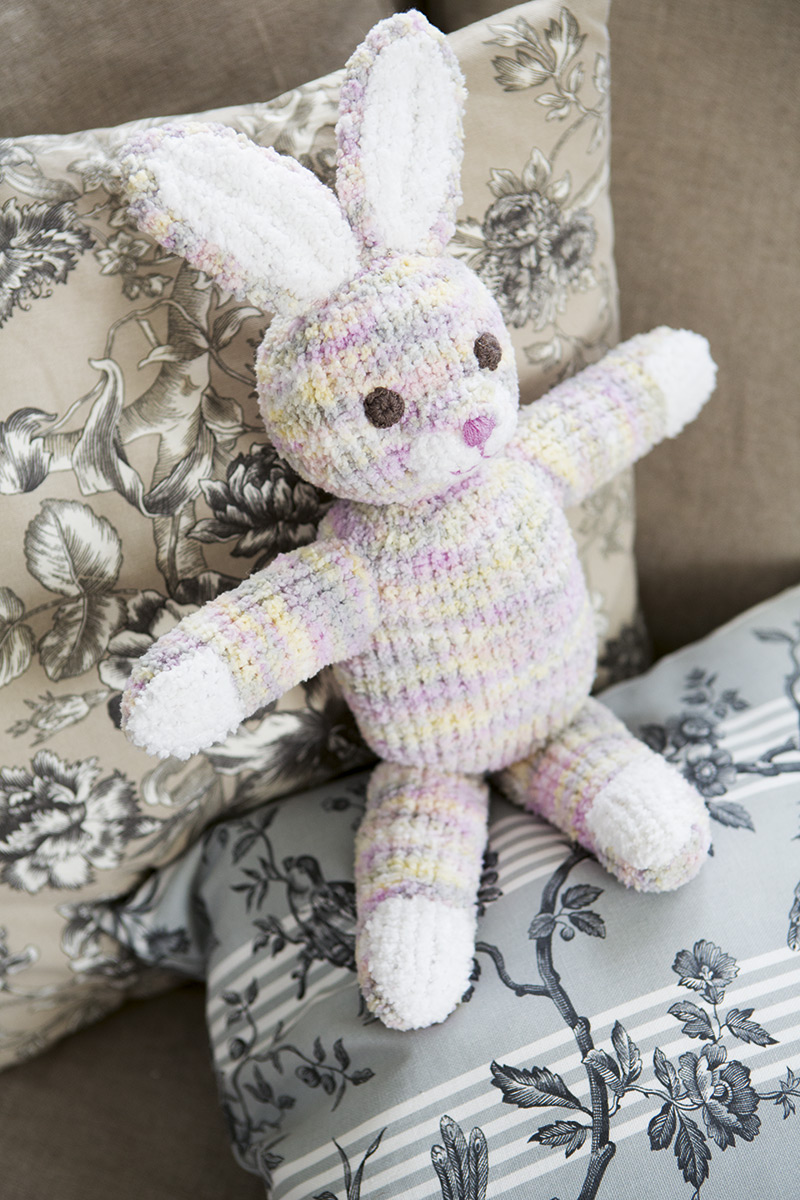 Mein Name ist Hase! Und ich weiß vor allem eins: ich will geknuddelt werden. Dieser süße Kuschelhase fühlt sich in Babys Armen so wohl wie der kleine Schatz in einem Jäckchen oder Kleidchen aus diesem flauschig soften Babygarn.