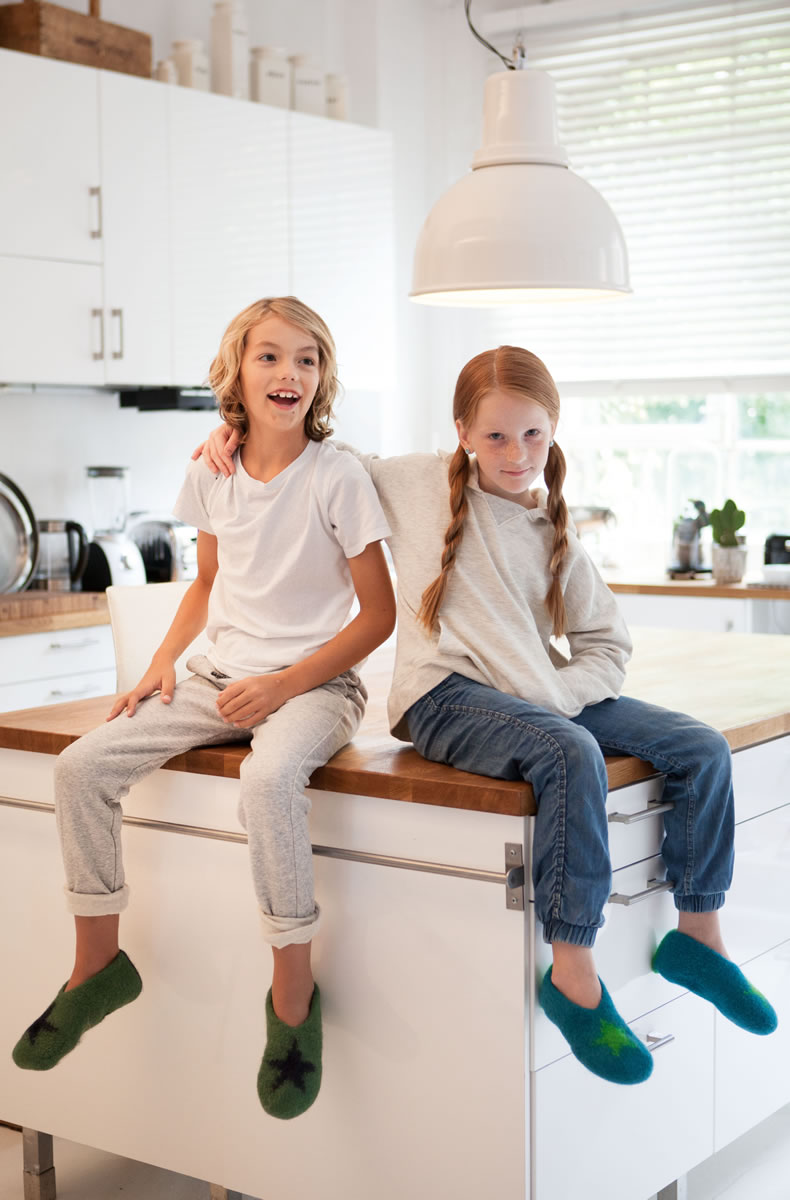 Es gibt viele Gründe für diese tollen Sternchen-Hausschuhe: Man kann damit prima den Altbauflur entlang schlittern und nebenher noch bohnern, Gäste trinken trotz kalter Küchenkacheln noch einen zweiten und dritten Wein, die tollen Farbkombinationen machen süchtig und fix gestrickt sind sie auch noch!