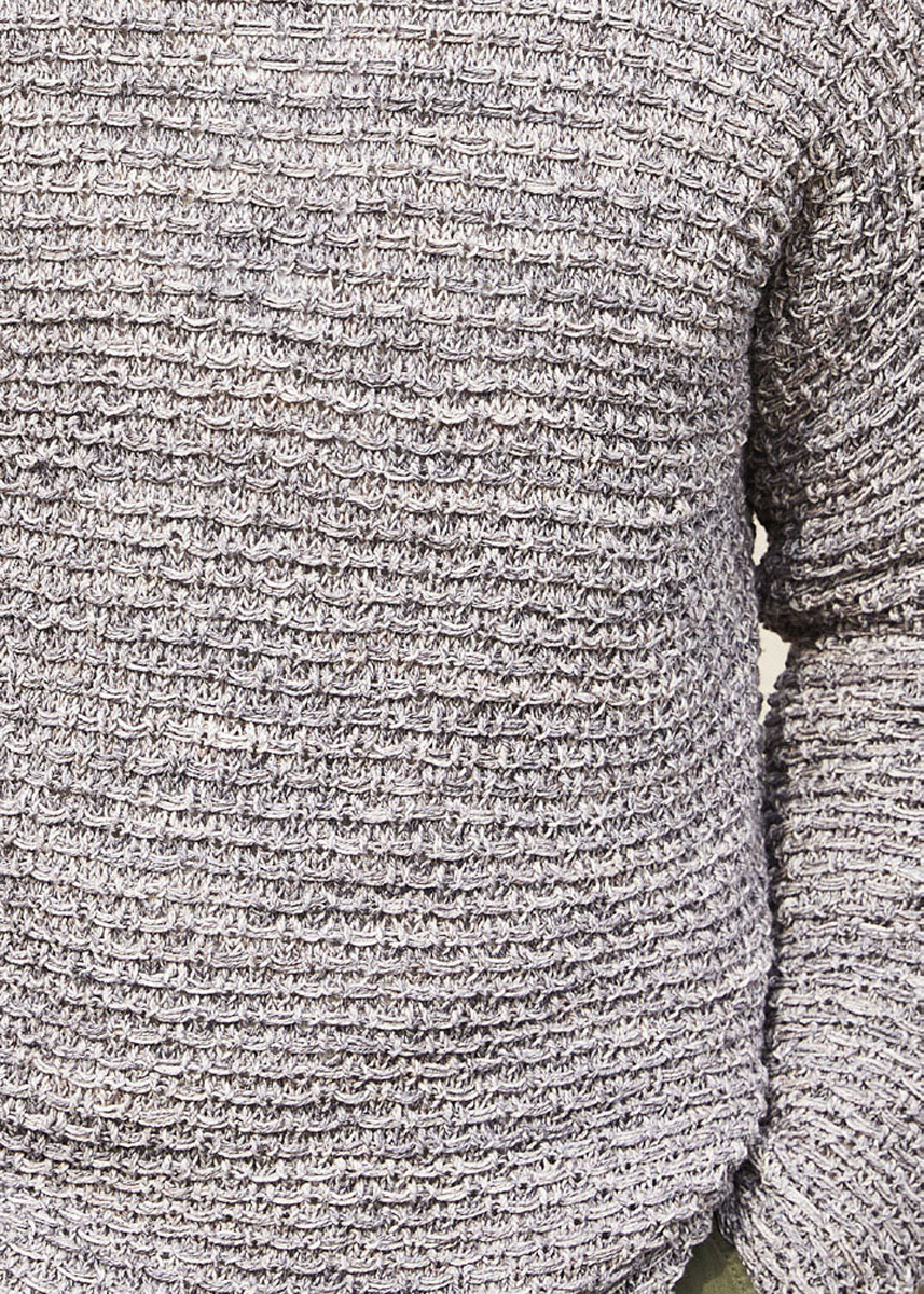Lana Grossa-Qualität „Landlust- Sommerseide Mélange“ (50% Seide, 50% Baumwolle, LL ca. 170 m/50 g), 650 (700 - 750) g in Graubraun/Beige Meliert (Fb 114); Stricknadeln Nr. 4,5, 1 Rundstricknadel Nr. 3,5, 50 lang.