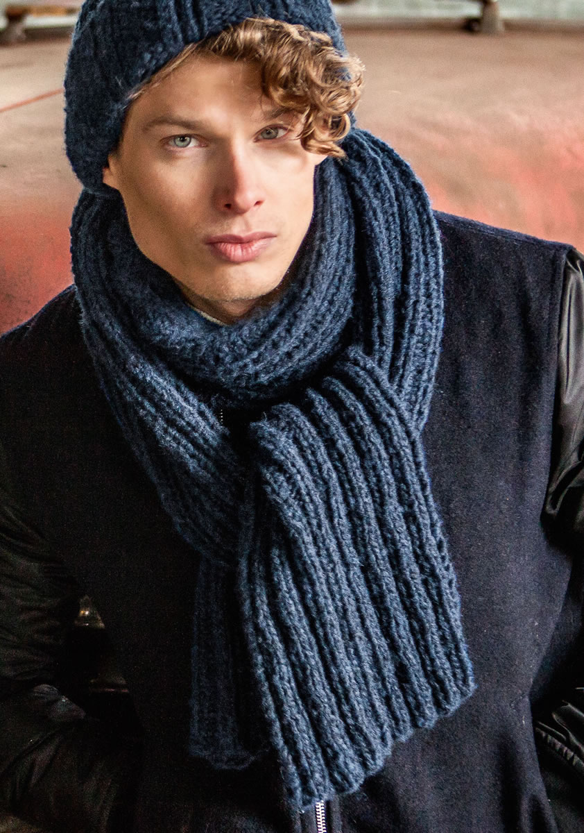 Lana Grossa-Qualität „Più Colori“ (48 % Schurwolle (Merino), 47 % Viskose, 5 % Polyamid, Lauflänge ca. 100 m/50 g): ca. 250 g Nachtblau meliert (Fb. 6); Stricknadeln Nr. 6,5.