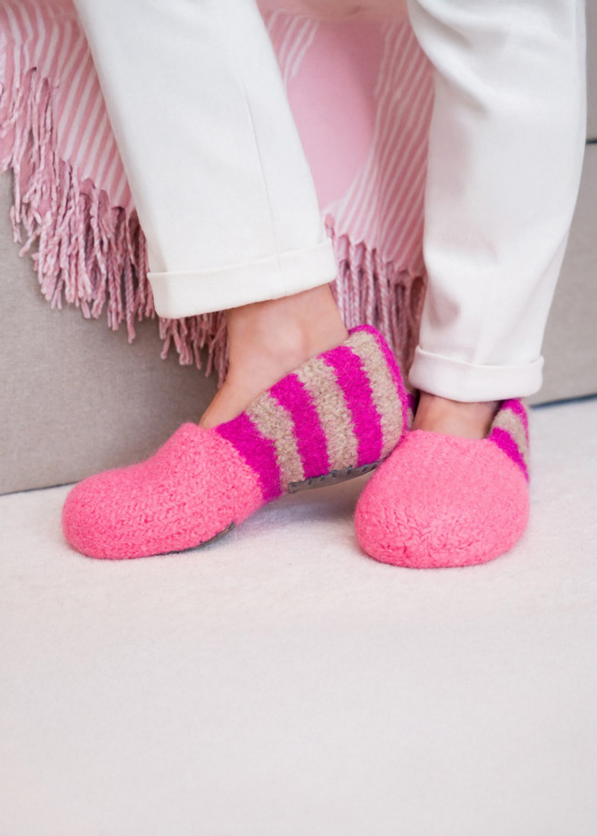 Ein großer Vorteil von Filz ist seine temperaturausgleichende Eigenschaft: Im Winter halten die Hausschuhe angenehm warm, im Sommer sorgen sie dafür, dass die Füße nicht überhitzen. Außerdem nimmt Filz Feuchtigkeit gut auf, ohne sich klamm anzufühlen – so bleiben die Füße immer trocken.