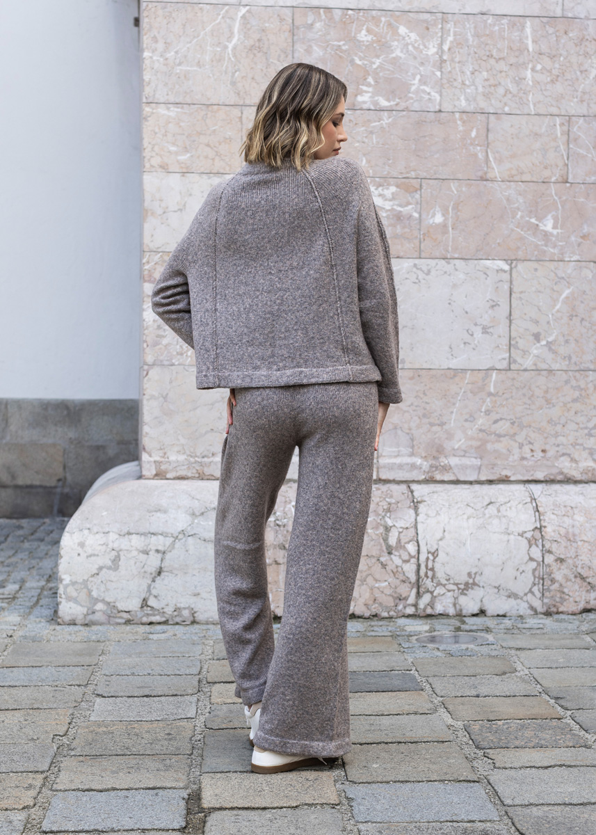 Die Hose wird in einem Stück von oben nach unten gestrickt. Sie hat am Modell eine Gesamtlänge von ca. 106 cm, einen Taillenumfang von 64 (70 - 78 - 86 - 98 - 110) cm, einen Oberschenkelumfang von 62 (66 - 70 - 75 - 80 - 88) cm, einen Hüftumfang von 90,5 (98 - 108 - 116,5 - 118 - 140) cm und basierend auf 106 cm Gesamtlänge eine Innenbeinlänge von 74,5 (73,5 - 72,5 - 71,5 - 70,5 - 69,5) cm.