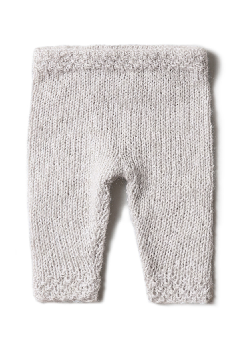 Lana Grossa Ecopuno (72 % Baumwolle, 17 % Schurwolle (Merino), 11 % Alpaka (Baby), Lauflänge = 215 m/50 g): 50 (50/100) g Silbergrau (Fb 45); Stricknadeln Nr. 3,5; eine 40 cm lange Rundstricknadel Nr. 3,5; Wäschegummi, 10 mm breit und ca. 50 (50/60) cm lang.