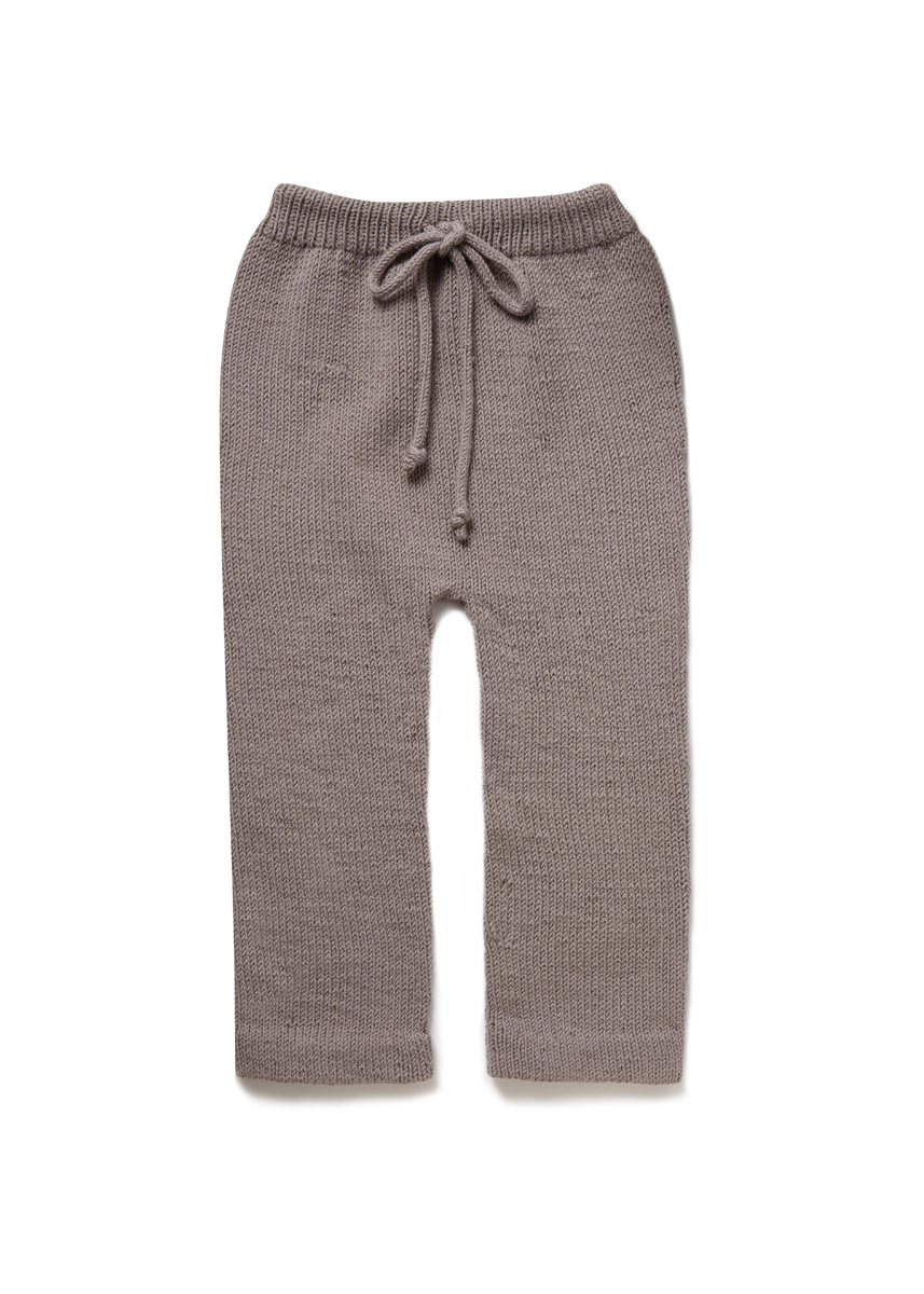 Lana Grossa-Qualität „Elastico“ (96 % Baumwolle, 4 % Polyester (Elité); Lauflänge = 160 m/50 g): 100 (150/150/200) g Graubraun (Fb 137); je eine Rundstricknadel 3 mm und 3,5 mm; Strickliesel.