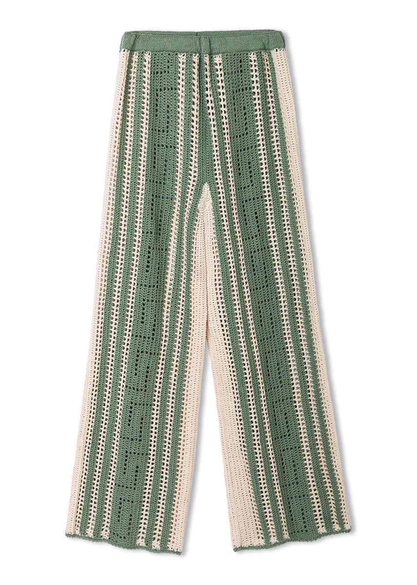Lana Grossa-Qualität „Summer Cashmere” (90 % Baumwolle, 10 % Kaschmir, LL = ca. 210 m/50 g): ca. 300 g Creme (Fb. 2) und ca. 200 g Resedagrün (Fb. 23); 1 Wollhäkelnadel Nr. 3; 1 Rundstricknadel Nr. 3, 60 cm lang; ca. 65 cm weißes Gummiband, 2 cm breit.