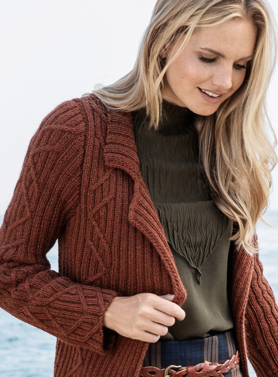 Lana Grossa Alpaca Peru 100 (100 % Alpaka, Lauflänge 100 m/50 g); 700 (700 – 750) g Kupfer (Fb 112); Stricknadeln Nr. 4,5,eine 40 cm lange Rundstricknadel Nr. 4, Häkelnadel Nr. 4