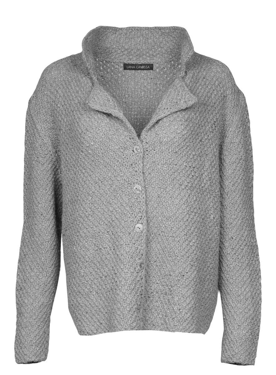 Strickjacken im Blazerstil sind durchaus bürotauglich. Statt Jeans kombinieren wir dann Cordröcke oder Nadelstreifenhosen und niemand bemerkt, dass wir in ihr gestern noch den ausgedehnten Waldspaziergang gemacht haben.