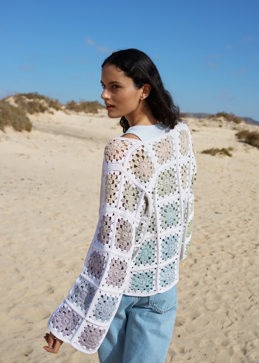 Der pastellige Farbverlauf dieser Granny-Jacke entsteht von ganz allein durch COTONELLA.