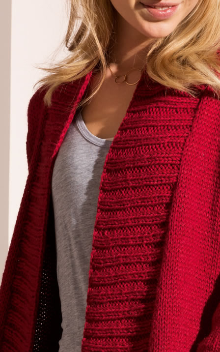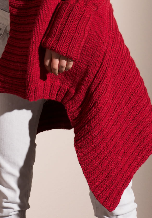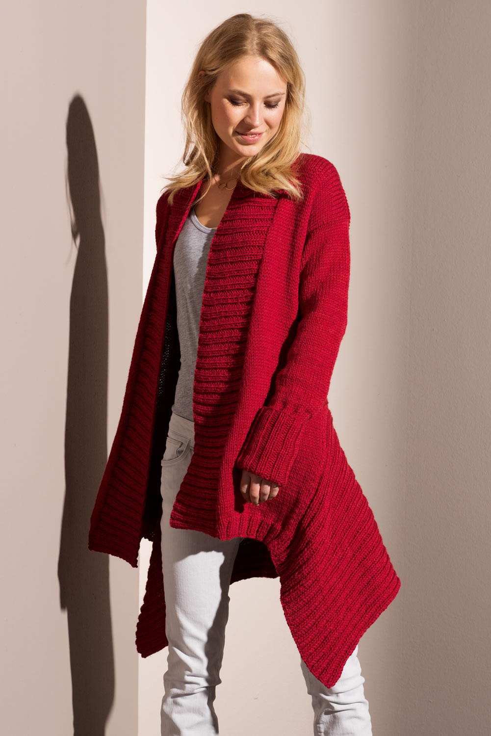 Lana Grossa „Bingo Alpaca“ (70% Schurwolle Merino, 30% Baby Alpaca, LL = 70 m/50 g), ca. 1000 (1050/1100) g Rot (Fb 5), Stricknadeln Nr. 6 und 6,5.