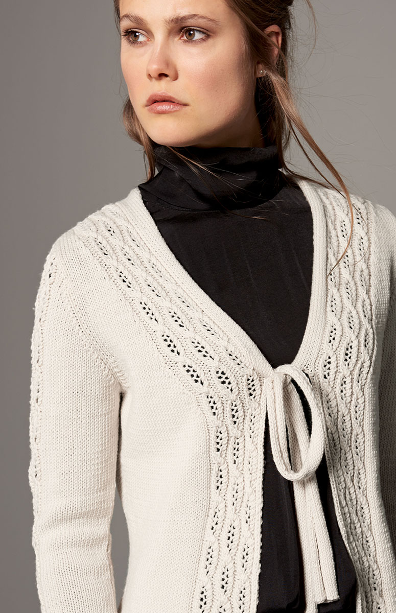 Strickjacke ist nicht gleich Strickjacke. Mit zarten Ajourmuster-Blenden und Bindeverschluss wird aus dem schlichten Klassiker ein charmanter Eyecatcher, der mit jedem individuellen Styling einen neuen Look hervorbringt.