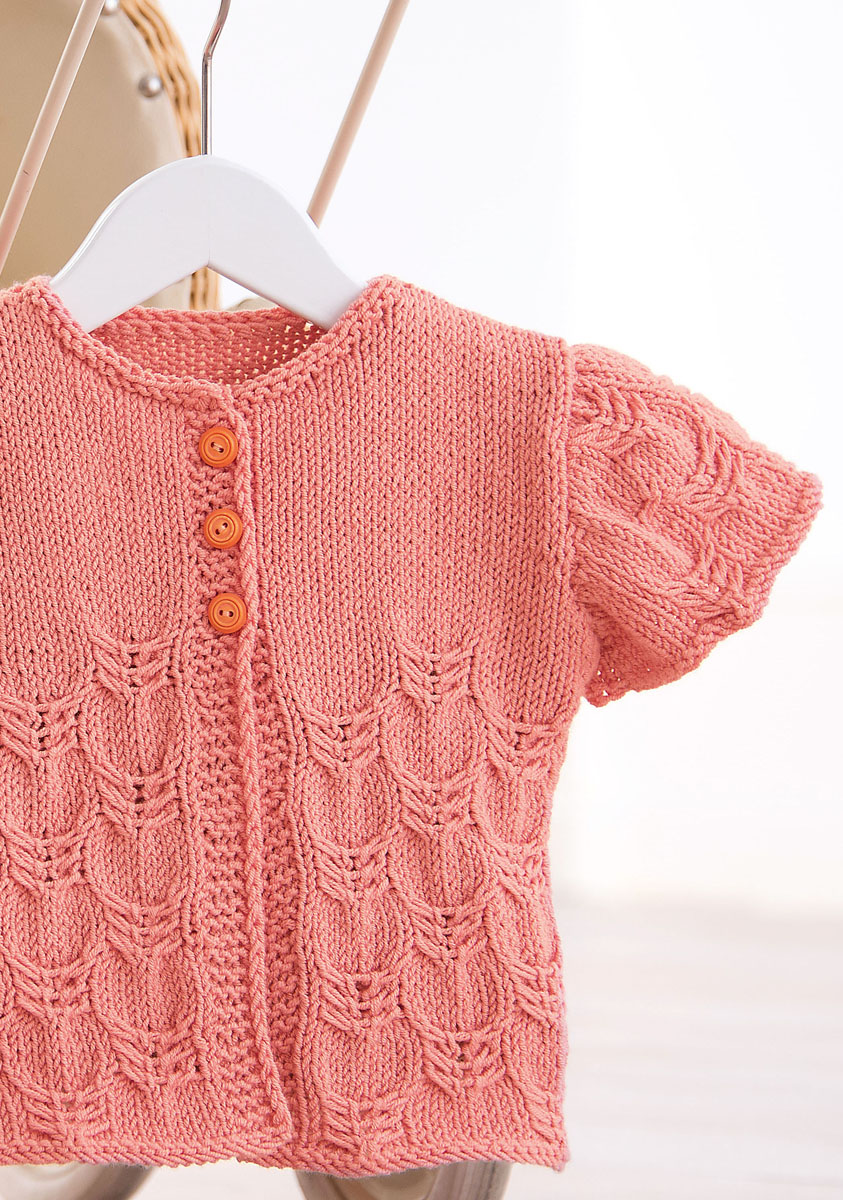 Püppchen eingepackt - und losmarschiert! Endlich barfuß durch frisches Gras laufen, in einem luftigen Sommerkleidchen, mit einer hübschen Ajourborte, das in einer leichten A-Line gestrickt ist. Falls es doch mal kühler sein sollte, kommt das Jäckchen mit kurzen Flügelärmeln zum Einsatz. Übrigens: beide Teile lassen sich wunderbar mit Bluse, einem langärmeligen Shirt und einer Hose kombinieren.