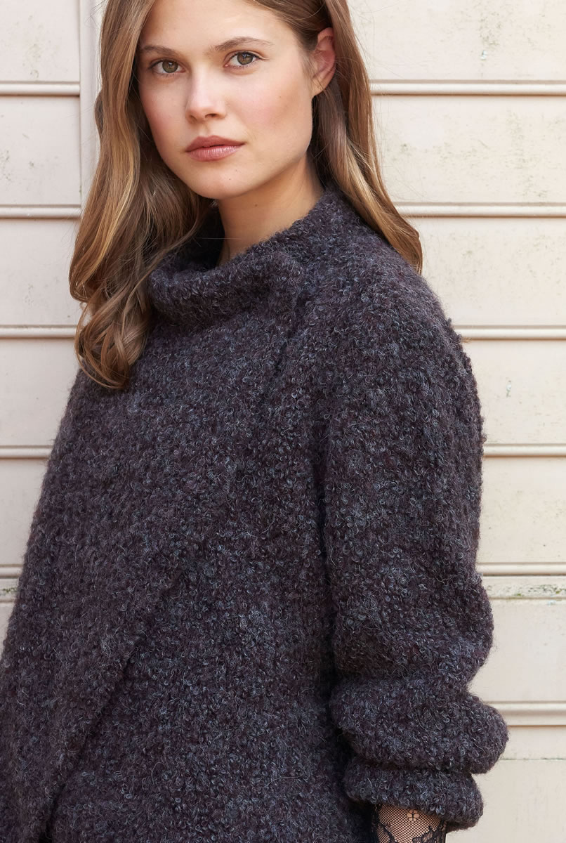 SANFT DRAPIERT statt zugeknöpft: so lautet das Strickrezept für diese Jacke. Mit Stehkragen, asymmetrisch gestrickten Vorderteilen, einer entspannt kastigen Form begleitet von weichen Melange-Tönen, entfaltet sich für uns ein Stylingtraum nach dem anderen!