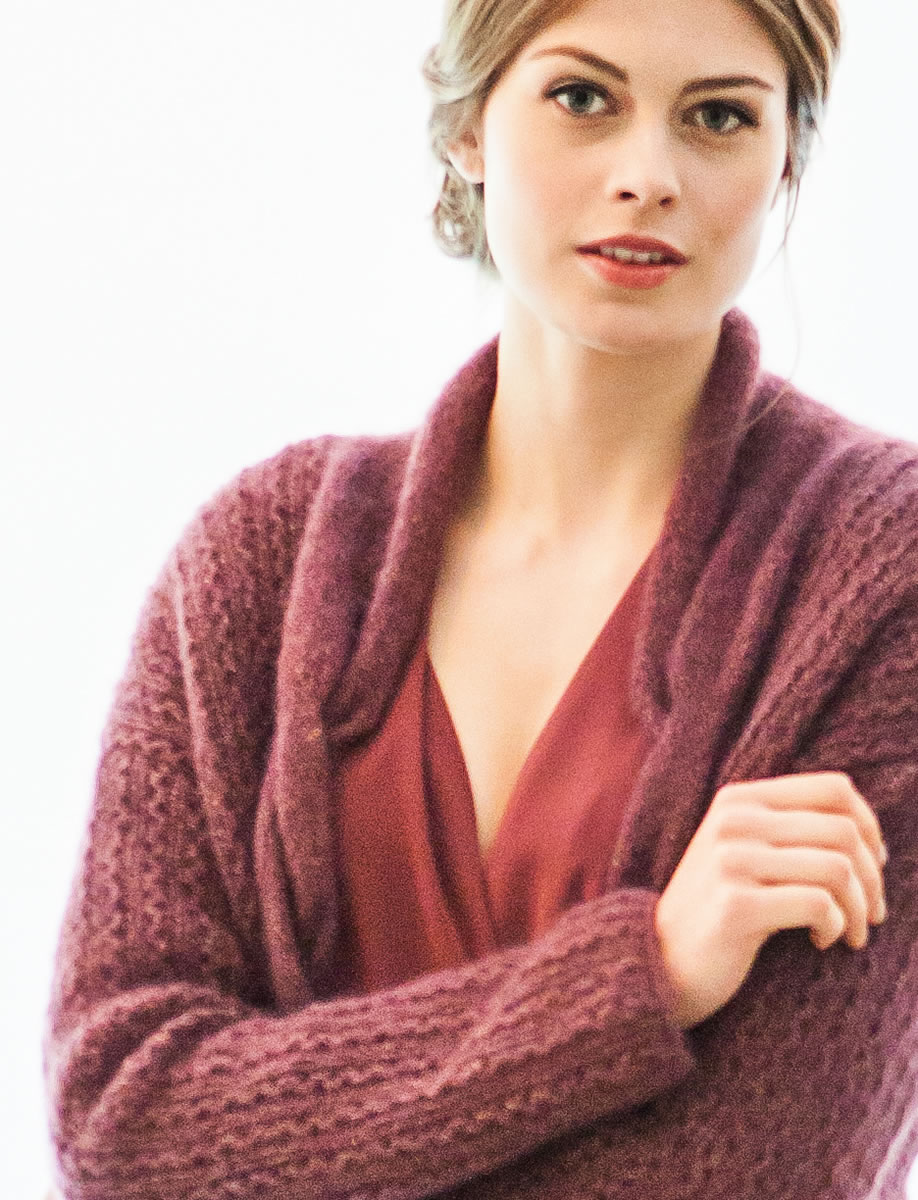 Lana Grossa „Splendid” (72% Super Kid Mohair, 21% Nylon, 7% Polyester LL = 150 m/25 g)) 200 g Burgund/Gold (Fb 3). Stricknadeln Nr. 4