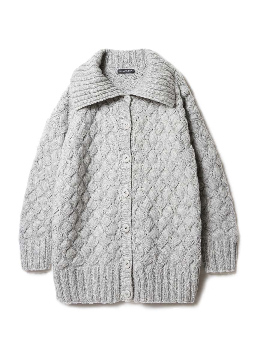 Die traumhafte Jacke profitiert von der perfekten Partnerschaft zwischen Muster und Garn: Erst die voluminöse, schaumweiche Qualität lässt das attraktive Flechtmuster ganz besonders plastisch wirken. Betont lange Bündchen und der hohe Umschlagkragen komplettieren den zeitlosen Up-to-date-Style.