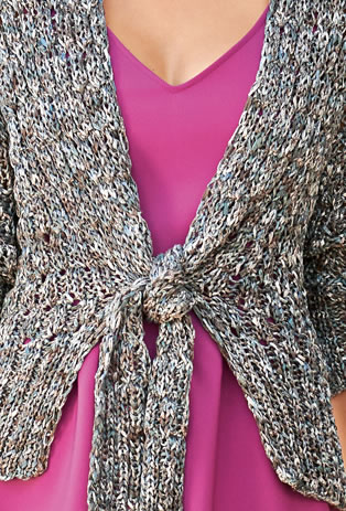 Lana Grossa-Qualität „Dacapo Multi” (100 % Baumwolle, LL = ca. 75 m/50 g): ca. 550 (600) g Graubraun/Jeans/Rosenholz/Natur (Fb. 112); Stricknadeln Nr. 6 und 7.