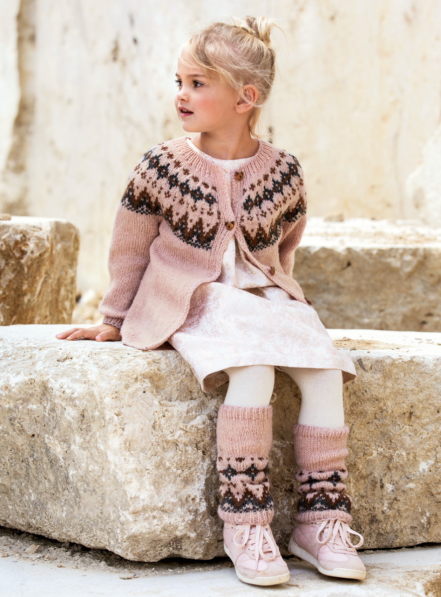 Lana Grossa Landlust Merino 180 (100% Schurwolle Merino superwash, Lauflänge 180 m/50 g), 150 (200 – 250) g Pastellrosa (Fb 202), 50 g Dunkelgrau (Fb 219) und 50 g Rehbraun (Fb 227); Stricknadeln Nr. 5 und 6, 1 Rundstricknadel Nr. 6, 80, 60 und 40 cm lang, Rundstricknadel Nr. 5, 40 cm lang, 1 Wollsticknadel, 6 Knöpfe von UNION KNOPF, Art. 450060, Fb 20.