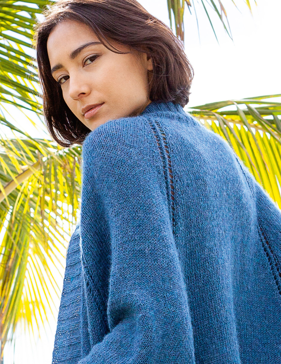 Oversize-Jacke aus Baumwoll-Alpaka-Mix wärmt in kühleren Sommernächten. Seine tiefgezogenen Raglanärmel sind zugleich elegant und modern. Und werden durch Lochmuster gekonnt inszeniert.