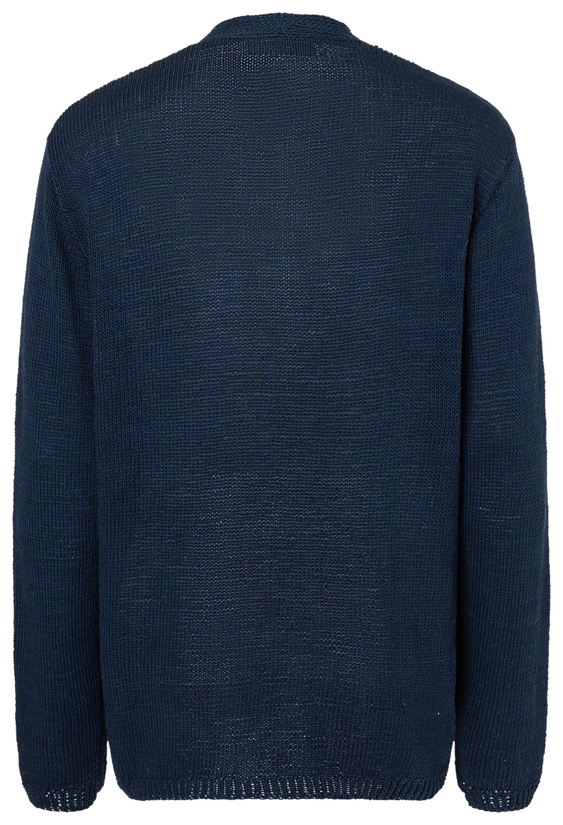 Lana Grossa Solo Lino (80% recyceltes Leinen (Viskose), 20% Leinen, Lauflänge 120 m/50 g), 750 (800 – 800) g Nachtblau (Fb 12); Stricknadeln Nr. 3 und 3,5.