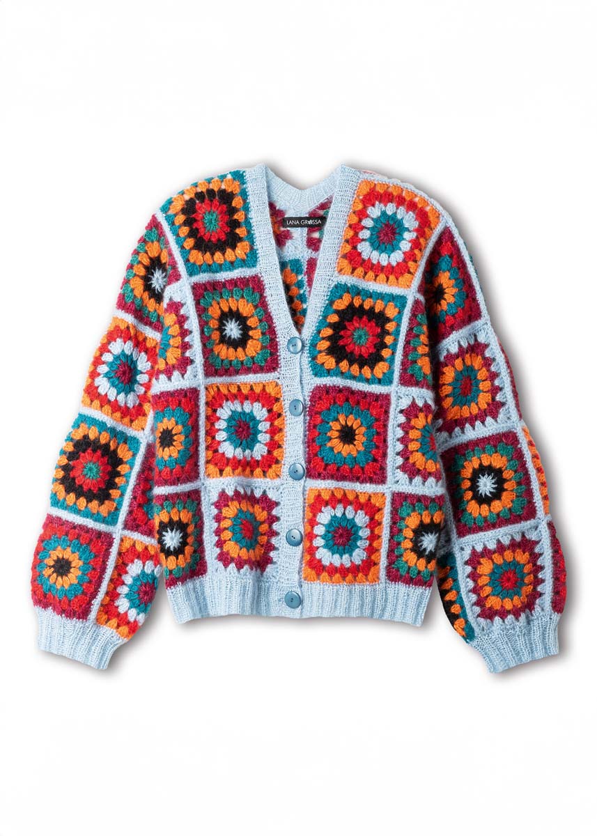 Traditionalisten – Großvaters Strickjacke prunkt hier mit 50 klassischen Granny Squares. Ein Traumteil, sofern Näharbeit für Sie keine Strafarbeit ist