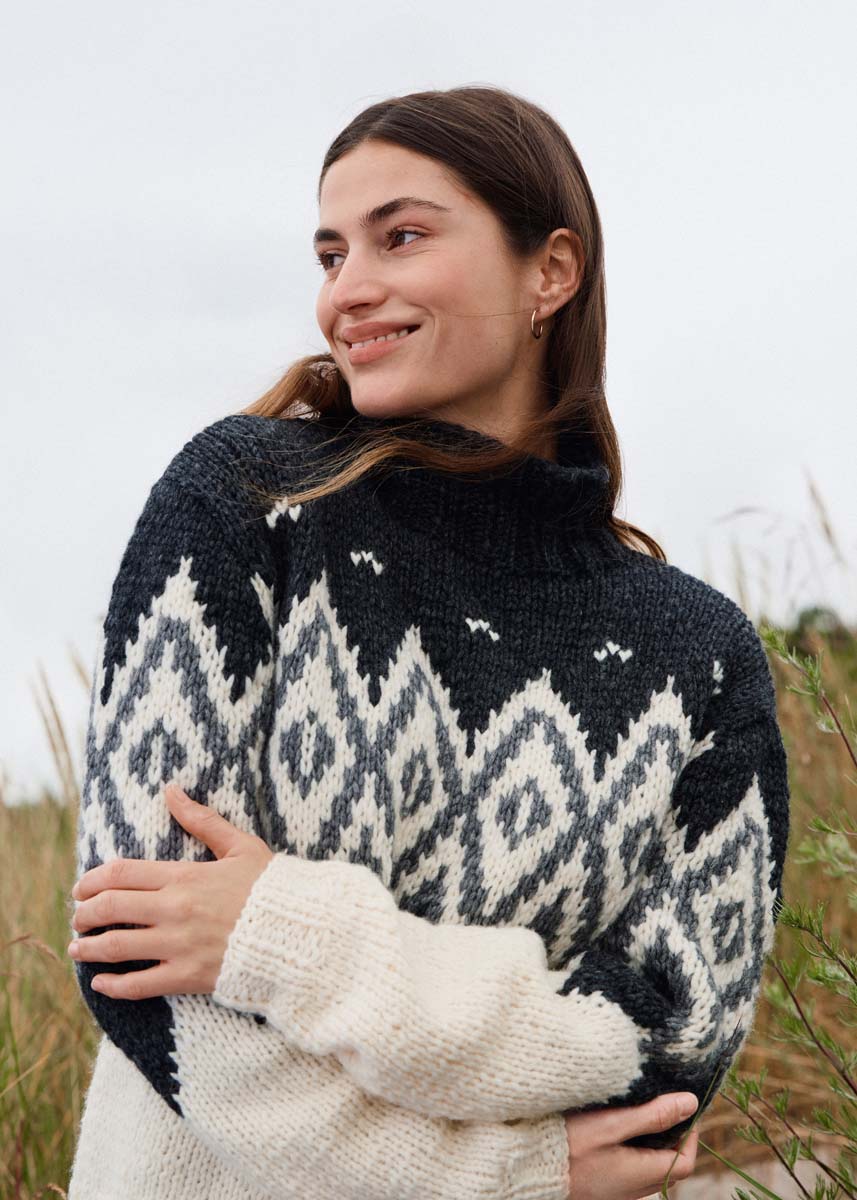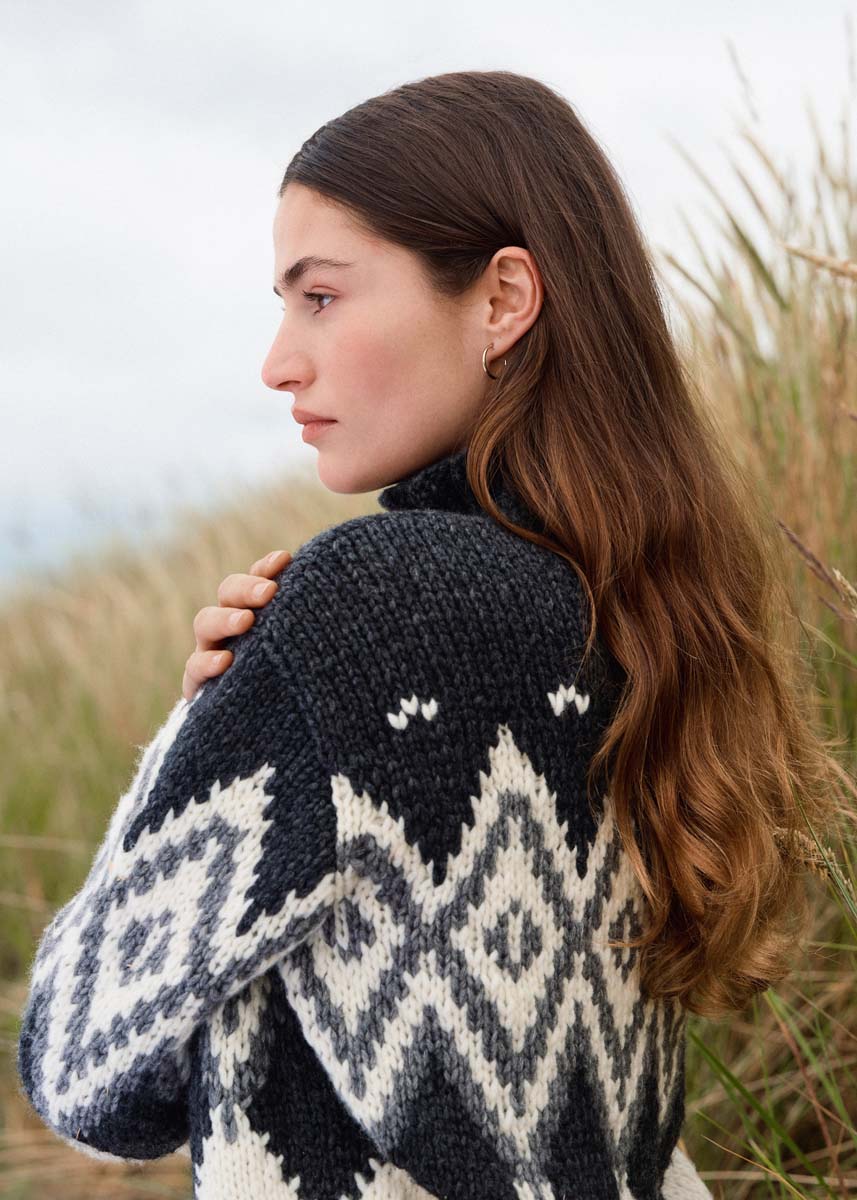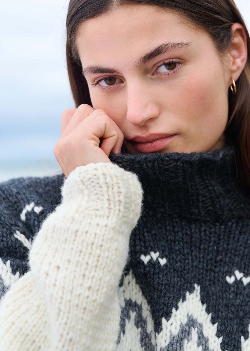 Hej, hallo und halló: Mit skandinavischem Gruß möchten wir Ihnen den Winterklassiker schlechthin empfehlen. Für das Jacquard-Muster braucht es zwar Übung, aber für ein Stück, das so zeitlos ist, dass es (bei guter Pflege) unsere Kindeskinder noch cool finden, lohnt sich die Geduld allemal.