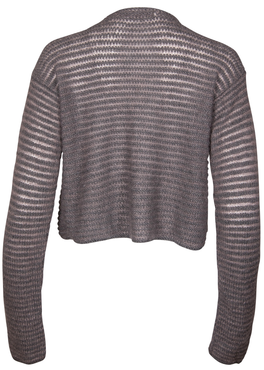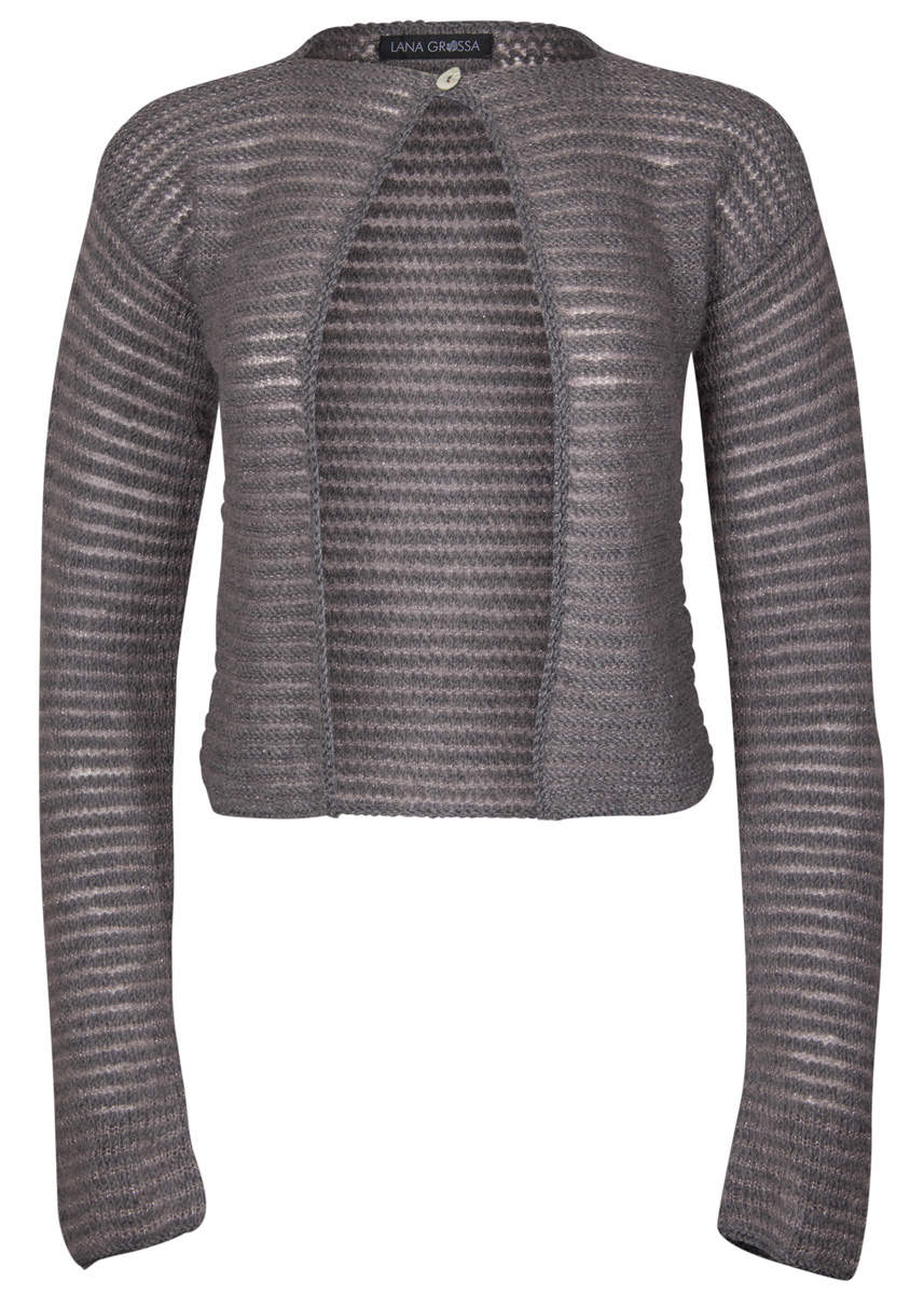 Glitzerndes Mohair-Seidengarn, Merinowolle und auf links gedrehte Ärmel zaubern hier dezente Strukturen und einen leicht transparenten Glamour-Look.