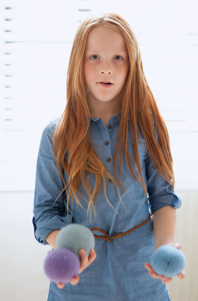 Lana Grossa Feltro (100% Schurwolle, Lauflänge 50 m/50 g), 50 g Hellblau (Fb 66), 50 g Mint (Fb 67), 50 g Perlviolett (Fb 74); Stricknadeln Nr. 8, 1 Wollnadel, 1 reißfester Nähfaden.