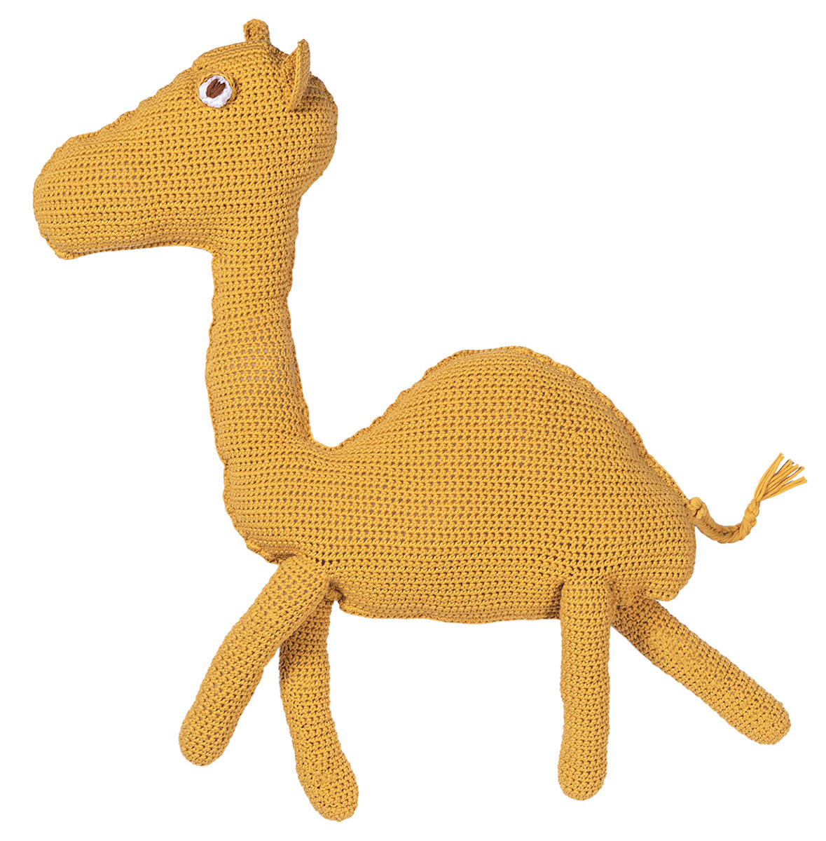 Lana Grossa Riserva (70% Bio Baumwolle, 30% Rec. Polyamid, Lauflänge 125 m/50 g), 300 g Gelb (Fb 17) und je 1 Rest Weiß (Fb 1) und Graubraun (Fb 4); 1 Häkelnadel Nr. 3,5, 5 und 7, von PRYM 250 g Füllwatte Art. 968 210.