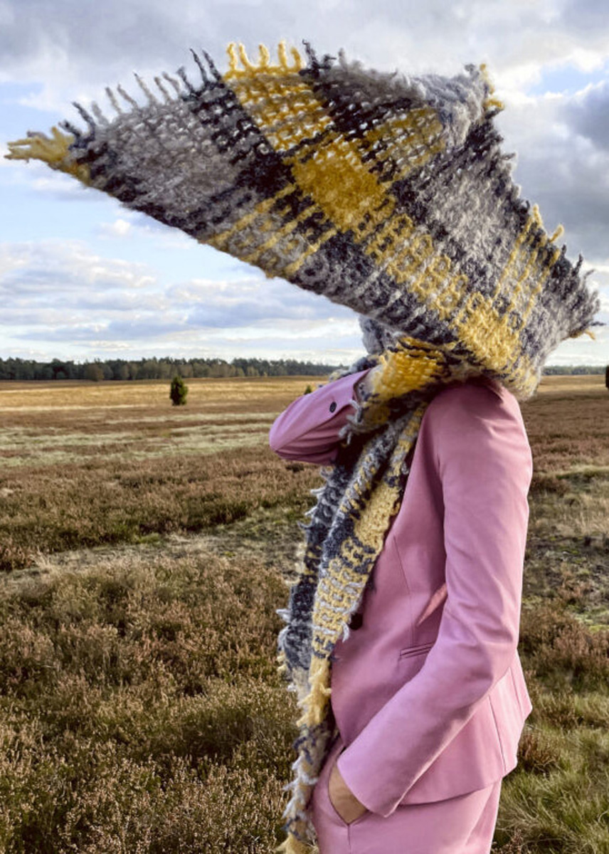 300g "Nuvoletta" (42 % Alpaka, 42 % Schurwolle Merino, 16 % Polyamid, Lauflänge: ca. 250 m / 50 g), je 100g in Dunkelgrau (Farbe 15), Hellgrau (Farbe 14) und Aprikose (Farbe 17).
