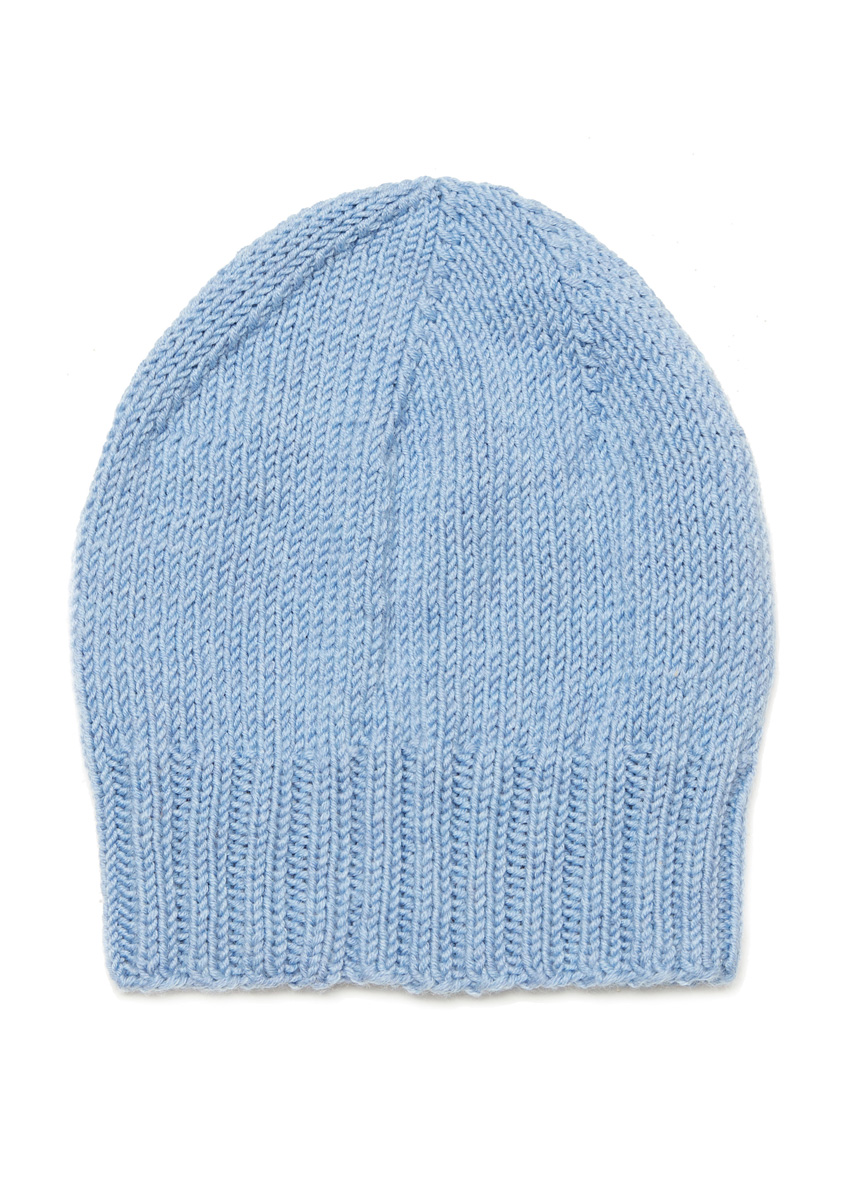 Lana Grossa Cool Wool Big Mélange (100 % Schurwolle (Merino extrafine), LL = ca 120 m/50 g), 50 (50 - 100) g in Hellblau meliert (Fb 1620). 5 Spielstrick-Nd (= Nadelspiel) Nr. 3,5 und Nr. 4. Sechs MM.