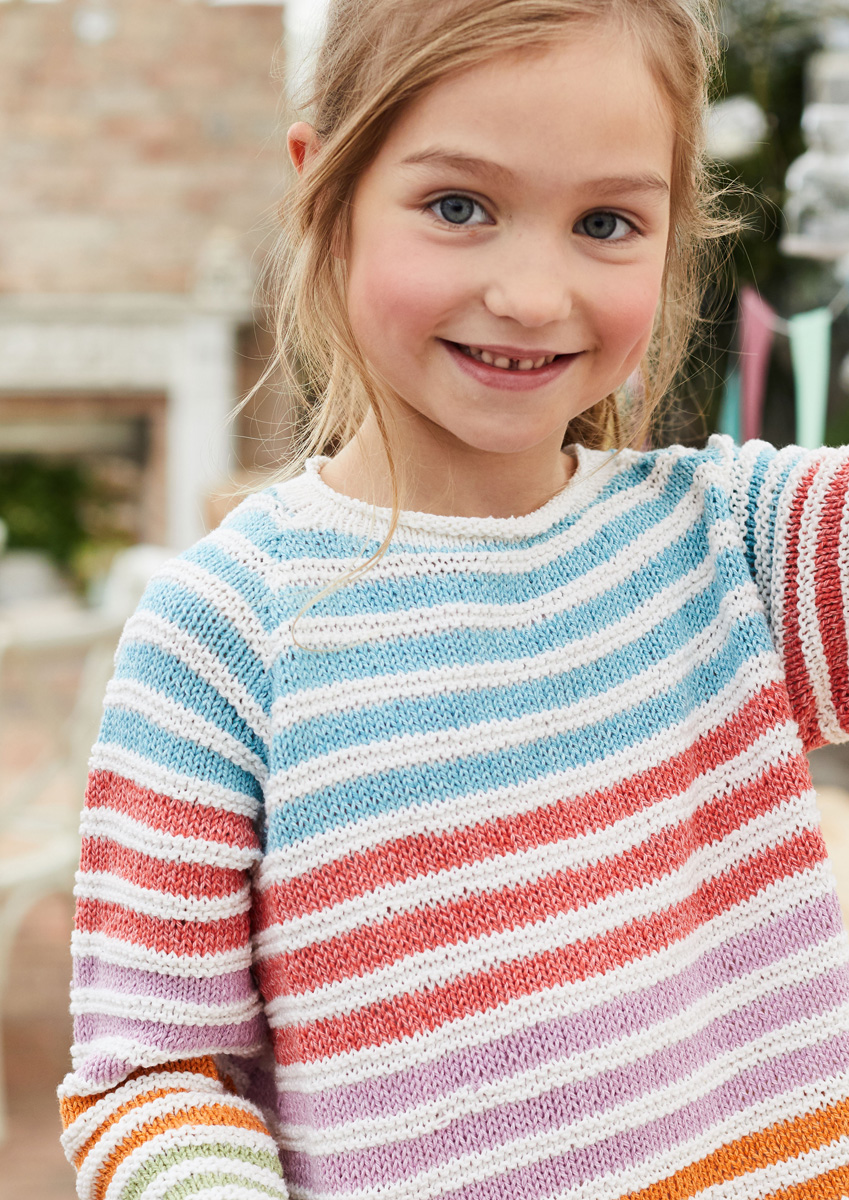 Lana Grossa-Qualität „Landlust Sommerseide“ (50% Seide, 50% Baumwolle, LL ca. 170 m/50 g), 150 (200 - 200) g Weiß (Fb 1), je 50 g Zartgrün (Fb 3), Orange (Fb 10), Flieder (Fb 22), Rot/ Rosa (Fb 20) und Türkis (Fb 23); Stricknadeln Nr. 3,5, eine kurze Rundstricknadel Nr. 3