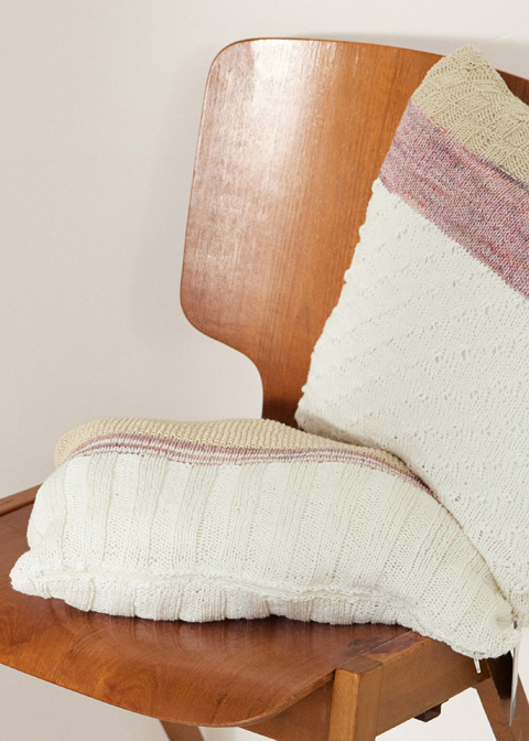 Für dieses Kissen brauchen Sie Lana Grossa Landlust Sommerseide (50% Seide, 50% Baumwolle, LL ca. 170 m/50 g), 100 g Natur (Fb 2), je 50 g Weiß (Fb 1) und Rosa mélange (Fb 102); eine 50–60 cm lange Rundstricknadel Nr. 3,5 oder 4; eventuell ein 40 cm langer Reißverschluss; eine passende Kissenfüllung.