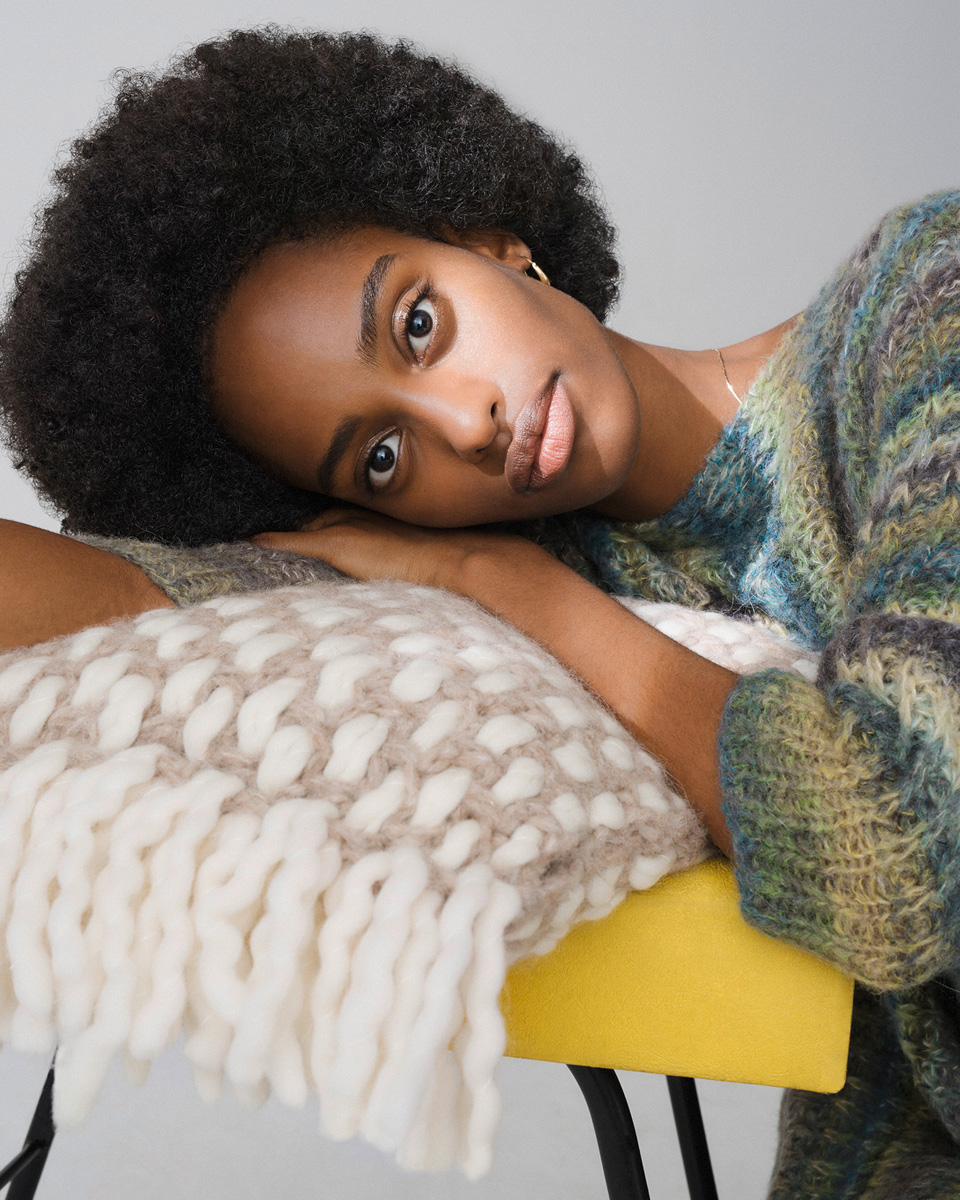 Farbvariante A: Lana Grossa Weekend (69 % Schurwolle, 30 % Alpaka, 1 % Baumwolle, Lauflänge 35 m / 100 g) 200 g Rohweiß (Fb 1) und Cloud (80 % Alpaka, 14 % Schurwolle, 6 % Polyamid, Lauflänge 80 m / 50 g) 150 g Beige (Fb 2); Häkelnadel Nr. 9; Kisseninlett 45 × 45 cm.